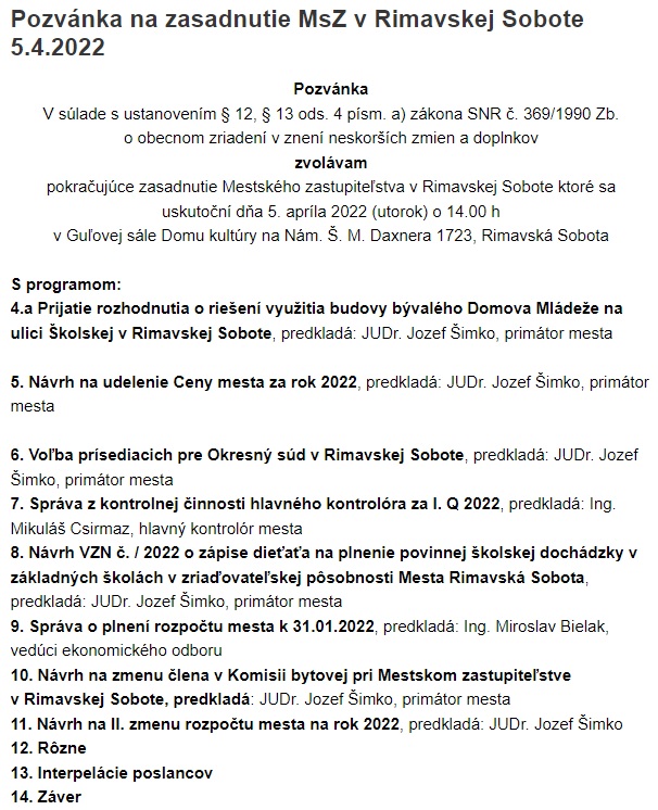 RIMAVSKÁ SOBOTA - Uplynulé zasadnutie mestského zastupiteľstva (29. marca) bolo ukončené predčasne. Predchádzali tomu výmeny názorov, nadávky a osočovanie, ktoré napokon ukončili členovia poslaneckého klubu Odvážme sa zrýchliť a z guľovej sály odišli.
