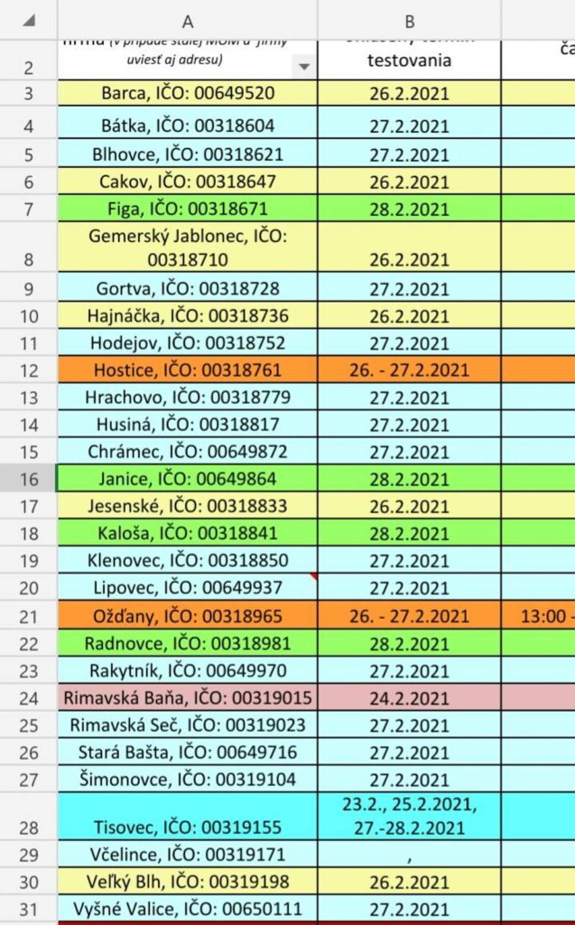 Počas víkendu sa v súvislosti s koronavírusom testuje vo viac ako dvadsiatich obciach Rimavskosobotského okresu. Ako pre Rimava.sk priblížil prednosta okresného úradu Rimavská Sobota Peter Pavlík, ide o lokality Bátka, Blhovce, Gortva či Hodejov. Dnes predovšetkým domácich obyvateľov otestujú aj v Hrachove, Husinej, Chrámci, Klenovci alebo v Starej Bašte. V nedeľu už len v obciach Figa, Janice, Kaloša a Radnovce. Otestovať sa však môžete aj v Tisovci. Bližší rozpis nájdete v priloženom zozname. Okrem toho je v prevádzke aj viacero mobilných odberových miest vo všetkých troch mestách okresu Rimavská Sobota.