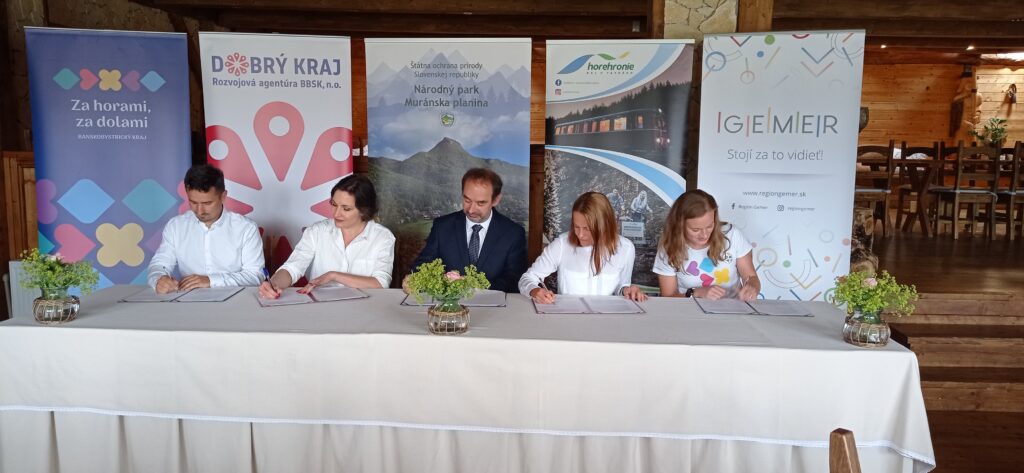 MURÁŇ - Signatári z piatich organizácií - Správa Národného parku Muránska planina, Rozvojová agentúra BBSK, OOCR Horehronie a Gemer a krajská organizácia cestovného ruchu Banskobystrický kraj Turizmus - podpísali Memorandum o spolupráci pri rozvíjaní Národného parku Muránska planina.