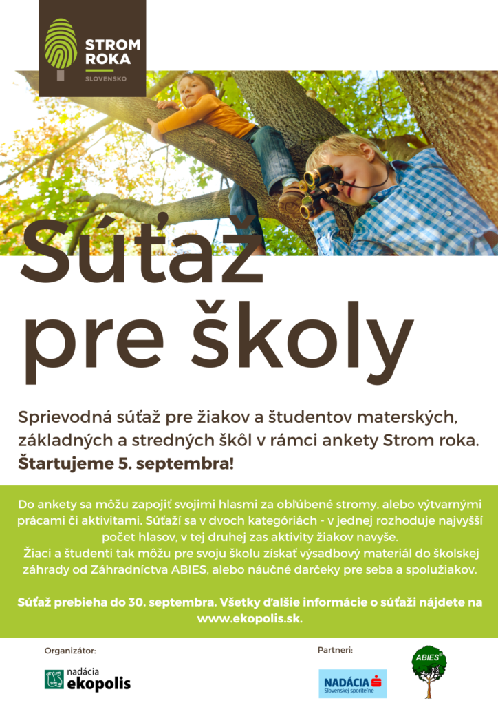 Do súťaže pridali aj novú kategóriu pre zapojené školy a jednotlivé triedy, kde sa hlasovania zúčastní len menší počet žiakov. „Pri výbere budú rozhodovať členovia našej nadácie, ktorí vyberú víťazov na základe ich iniciatívy, či práce navyše. Potešia nás napríklad fotky z výučby v prírode pri stromoch, fotografie žiakov s finalistom, prezentácie, umelecké práce detí, či napríklad video, ktoré si žiaci o stromoch pripravia – fantázii sa medze nekladú.“