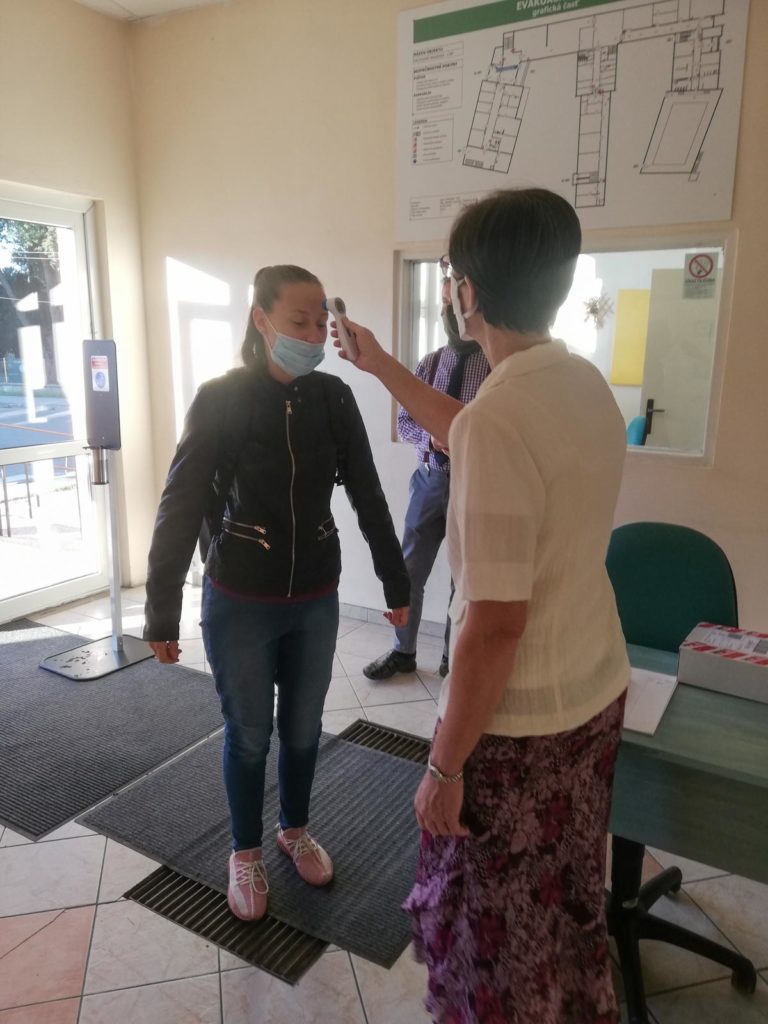 V škole, podobne ako v iných školských zariadeniach, majú ranný filter kvôli epidemiologickým opatreniam. "Posilnili sme pedagogický dozor ráno, okrem klasického dozoru čakajú traja pri vrátnici. Máme pripravené dva teplomery, keby sa jeden pokazil z toľkého počtu meraní," podotkla.