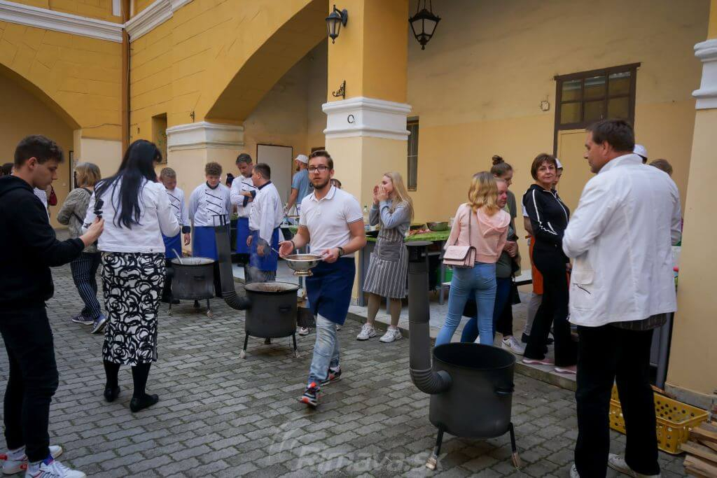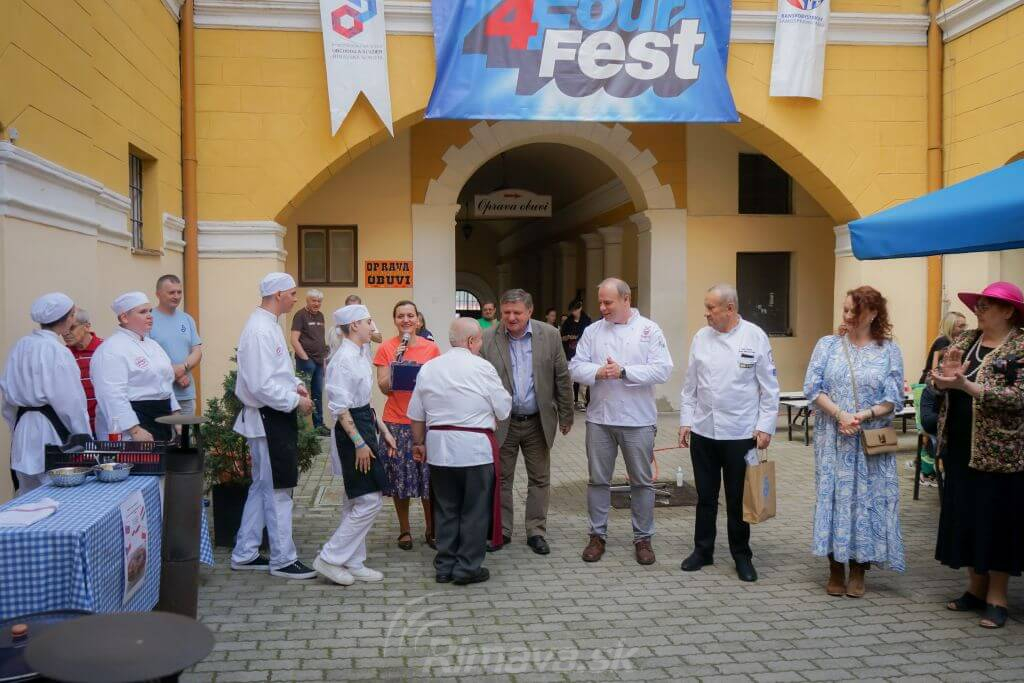 Dnes doobeda odštartoval Four Fest na nádvorí Čierneho orla súťažou vo varení fazuľovice. Po dvojročnej prestávke si svoje kulinárske umenie porovnali žiaci z usporiadateľskej školy – Strednej odbornej školy obchodu a služieb so žiakmi z českého Kolína a Poděbrad, maďarského mesta Kazincbarcika a poľského mesta Nový Sacz.