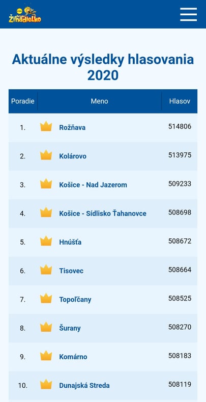 Rimavská Sobota v tomto kole už nezabojovala tak, ako predchádzajúce roky. V súťaži skončila na 48. priečke a mnoho z jej obyvateľov podporilo práve Hnúšťu alebo Tisovec.