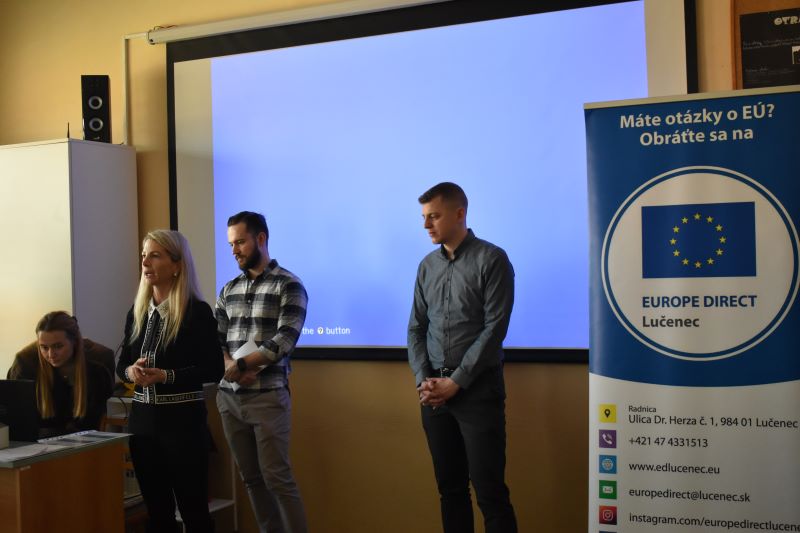 „21. februára 2023 sme začali prednáškou na Súkromnej základnej škole s materskou školou DSA v Lučenci a 7. marca pokračovali na Obchodnej akadémii v Lučenci a Strednej zdravotníckej škole v Lučenci za účasti predstaviteľov Ministerstva zahraničných vecí a európskych záležitostí SR,“ uviedlo centrum Europe Direct.