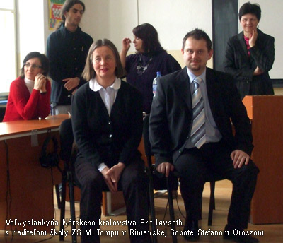 Na Základnej škole M. Tompu v Rimavskej Sobote včera v popoludňajších hodinách privítali veľvyslankyňu Nórskeho kráľovstva Brit Lovset. Prišla sa pozrieť, ako na škole prebieha projekt Rovnaká šanca – Očami žiakov, ktorý je financovaný práve z nórskych prostriedkov.