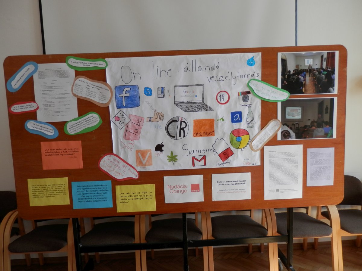S cieľom podporiť vzdelávanie o nástrahách komunikačných technológií na základných a stredných školách vyhlásila Nadácia Orange v roku 2014 grantový program s názvom „e-Školy pre budúcnosť“. Osemročné gymnázium Mihálya Tompu Reformovanej kresťanskej cirkvi s VJM v Rimavskej Sobote s projektom „On line – non stop ohrozenie?“ sa úspešne uchádzalo o finančnú podporu Nadácie. Zámerom iniciatívy učiteľov bolo spolu s odborníkmi a rodičmi obrniť žiakov proti možným „útokom“ cez sociálne siete. 30. apríla 2015 bol projekt ukončený vernisážou výstavy, ktorá pomocou fotiek, žiackych prác a citátov podala ucelený pohľad o programoch, ktoré sa v rámci projektu uskutočnili. Na výstavných paneloch sa objavil aj dotazník, ktorý pripravili deti svojim rodičom. Čo je to netiketa? Od koľkých rokov je povolená registrácia na facebook-u? Čo robí ten, kto spamuje? Čo je to cleverbot? – pýtali sa svojich rodinných príslušníkov, pričom hlavným cieľom nebolo otestovanie rodičov, ale poskytnúť priestor na debatu o internetových aktivitách a skúsenostiach detí v rodinnom kruhu. "Najdôležitejšie je otvorene a úprimne sa porozprávať a pravidelne rozprávať o tejto často zamlčovanej téme", tvrdili účastníci, ktorí boli do projektu zapojení. Je preto pochopiteľné, že aj v ostatných projektových aktivitách zohrával rozhovor dôležitú úlohu. Partnermi žiakov v debatách však boli vždy iní prizvaní odborníci. O virtuálnom šikanovaní, obťažovaní, manipulovaní cez internet sa deti rozprávali so skúseným vyšetrovateľom polície, workshopy absolvovali pod vedením psychológa, počítačového experta a sociálneho pedagóga, na vyučovacích a triednických hodinách zas hovorili o tejto téme s učiteľmi. Rodičia, odborníci a pedagógovia sú rovnako zainteresovaní v tom, aby z mladých ľudí vyrastali korektní a zodpovední užívatelia sociálnych sietí, ktorí sa kyberšikanovaniu dokážu ubrániť a vyhýbajú sa nevhodnému správaniu na internete. Pomocou projektu „On line – non stop ohrozenie?“ Reformované gymnázium urobilo významný krok vpred.