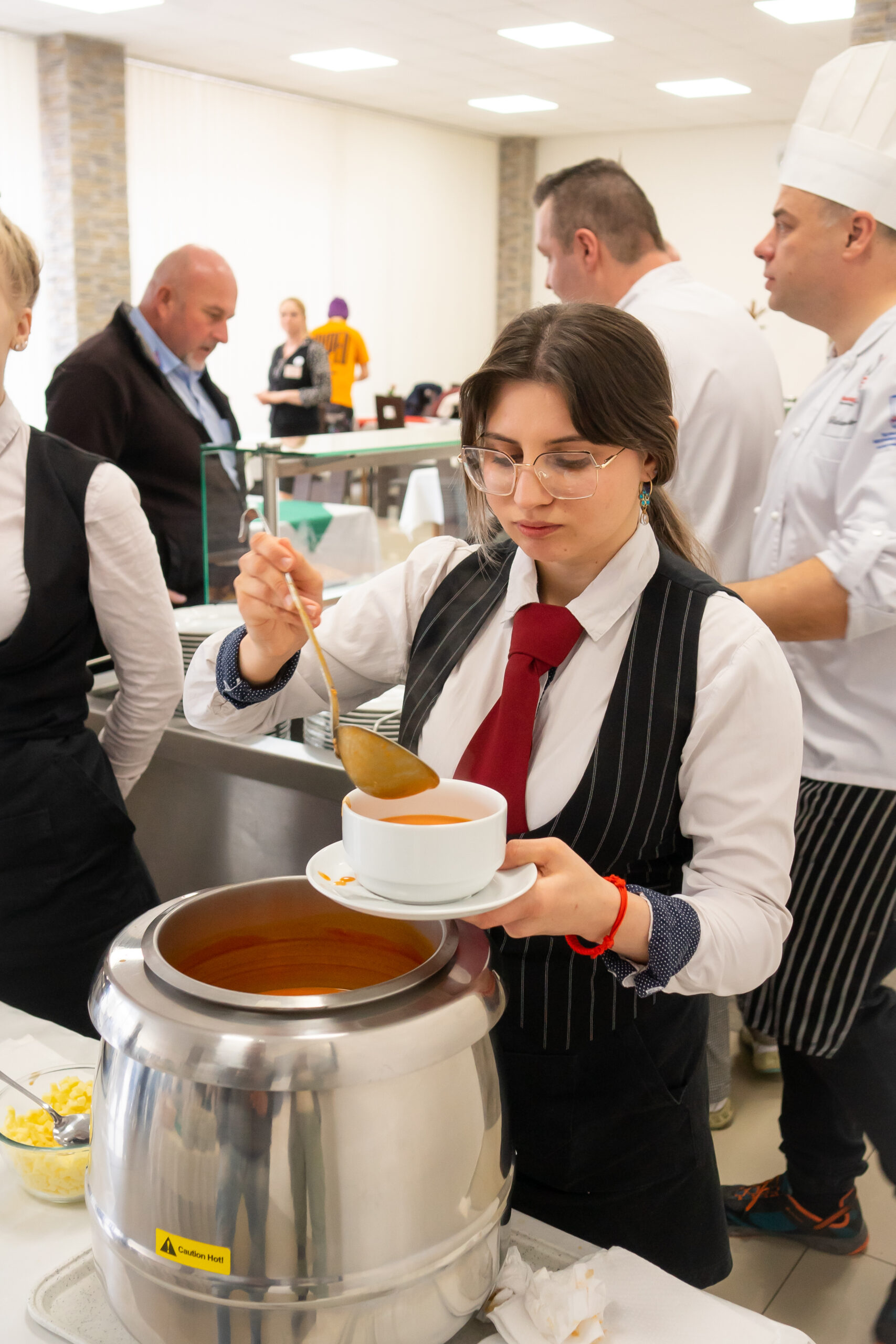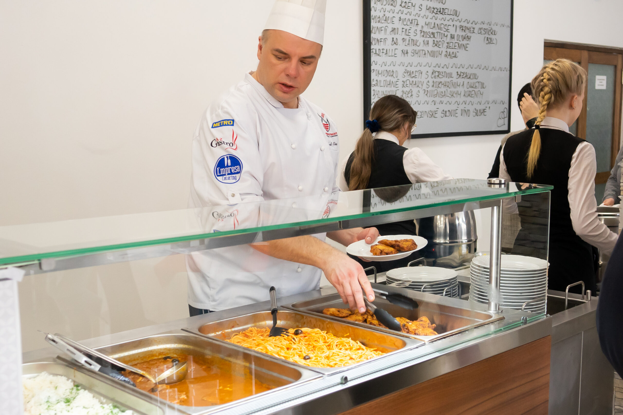 Špeciality pripravuje aj šéfkuchár Richard Cisár, ktorý so školou spolupracuje už siedmy rok. "Máme tu originálne špeciality z Talianska, všetko tematicky ladené do talianskej kuchyne – Minestrone polievku, konfitované hovädzie líčka, rizoto frutti di mare, penne arrabiata a mnoho ďalších dobrôt," prezradil pre Rimava.sk.