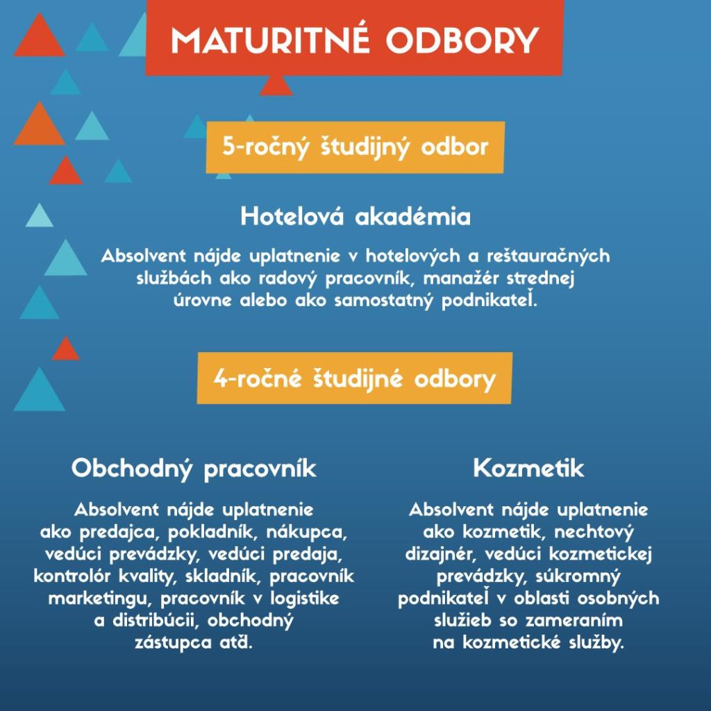 Maturitné 4-ročné študijné odbory – obchodný pracovník, kozmetik
