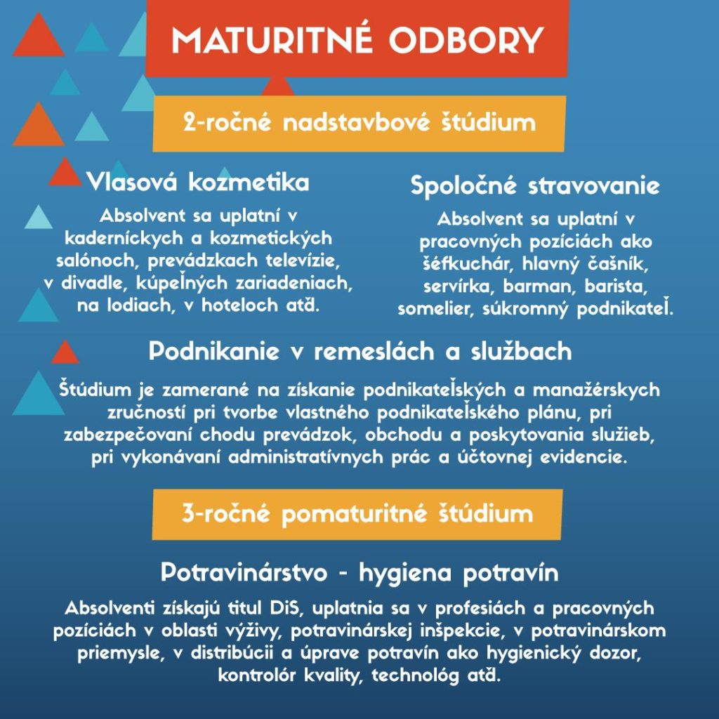 2-ročné nadstavbové štúdium – vlasová kozmetika, spoločné stravovanie, podnikanie v remeslách a službách