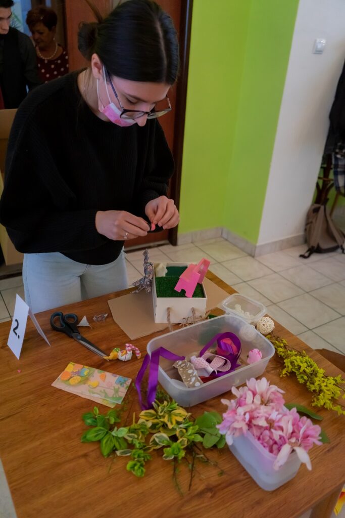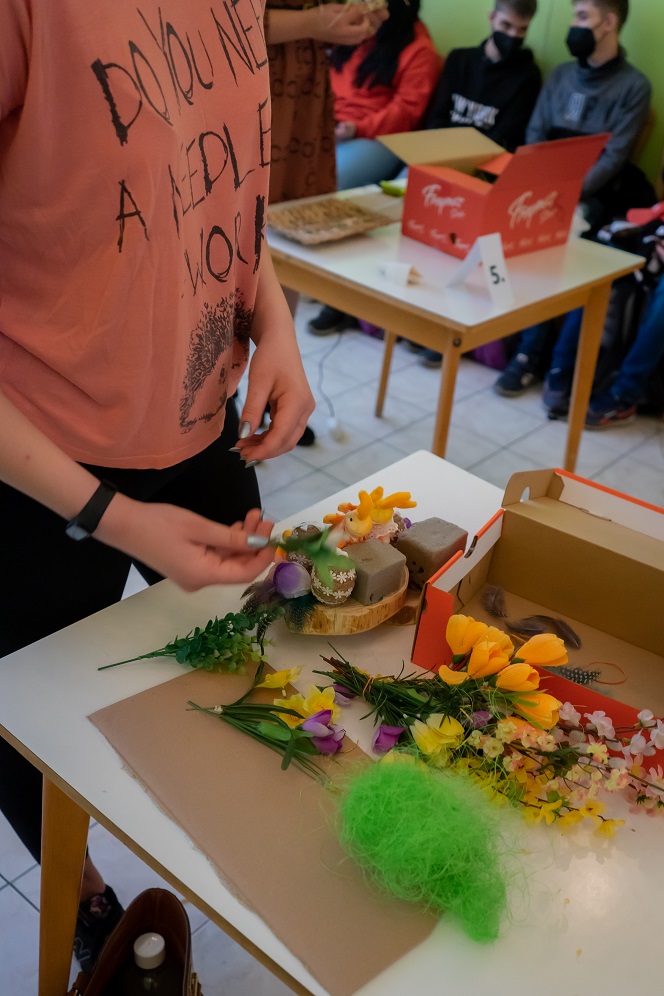 "Jednotlivci mali 45 minút na prípravu a aranžovanie ľubovoľnej veľkonočnej dekorácie, ako je ikebana a podobne," priblížil riaditeľ školy Jaroslav Bagačka. Žiaci - súťažiaci si so sebou priniesli materiál a samotnú dekoráciu zhotovovali na mieste.