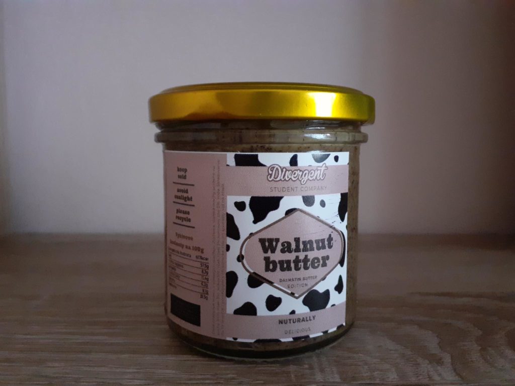 „Slovo divergent v preklade znamená „odlišný“ a taká tohtoročná firma nepochybne je. Firmu tvorí 25 členov, z toho 4 sú viceprezidenti jednotlivých oddelení. Novinkou sú taktiež aj nové pozície, ako napríklad riaditeľ plesu, zájazdu či športového oddelenia,“ povedala prezidentka firmy Nikola Machničová. Ich koordinátorkou je učiteľka aplikovanej ekonómie Erika Hrušková, ktorá po niekoľkých rokoch vystriedala Ladislava Čajka. Ako ďalej uvádzajú v správe Mateja Hanka, člena oddelenia marketingu v študentskej firme Divergent, takýto druh masla vyrábajú na Slovensku maximálne dve firmy. „Prírodný včelí med, ktorým je maslo sladené dodáva produktu protizápalové účinky. Maslá sú vyrábané z poctivo vyberaných surovín, bez umelých sladidiel a bez pridaných konzervantov a balené v sklenených nádobkách, ktoré je možné opätovne recyklovať,“ spomenula Machničová. Ako dodala, pilotné príchute boli Dalmatin (mak +kokos), Jelly (marhuľový džem), Rawnella (kakao + čokoláda) a Christmas (para orechy+ škorica).