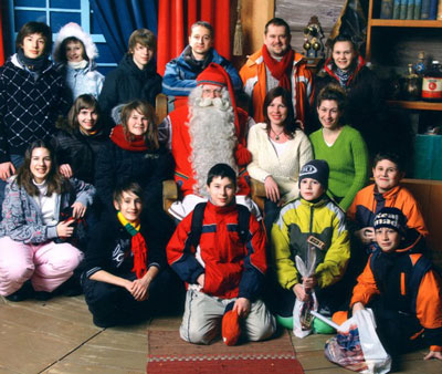 Ďalší deň nás čakal zájazd na polárny kruh do mesta Rovaniemi. Cestou sme sa zastavili pri ľadovom zámku v Kemi, pár desiatok kilometrov od Oulu. Vo vnútri bolo všetko z ľadu, stoly, stoličky, bar, výzdoba... Niektoré boli farebne podsvietené, takže dali pekne vyniknúť umelecky spracovanému ľadu. Okrem toho sme tu obdivovali aj krásne sochy z ľadu alebo snehu. Po trojhodinovej autobusovej ceste sme sa dostali do mesta Rovaniemi, ktoré je administratívnym a obchodným centrom Laponska, najsevernejšieho fínskeho kraja. Pozreli sme sa aj na Dedinku Santa Clausa - môžete k nemu zájsť na návštevu, kúpiť nejaké tie suveníry a vyfotiť si pravé (ale i falošné) soby. Určite vám povedia, že toto je jediný a pravý Santa.