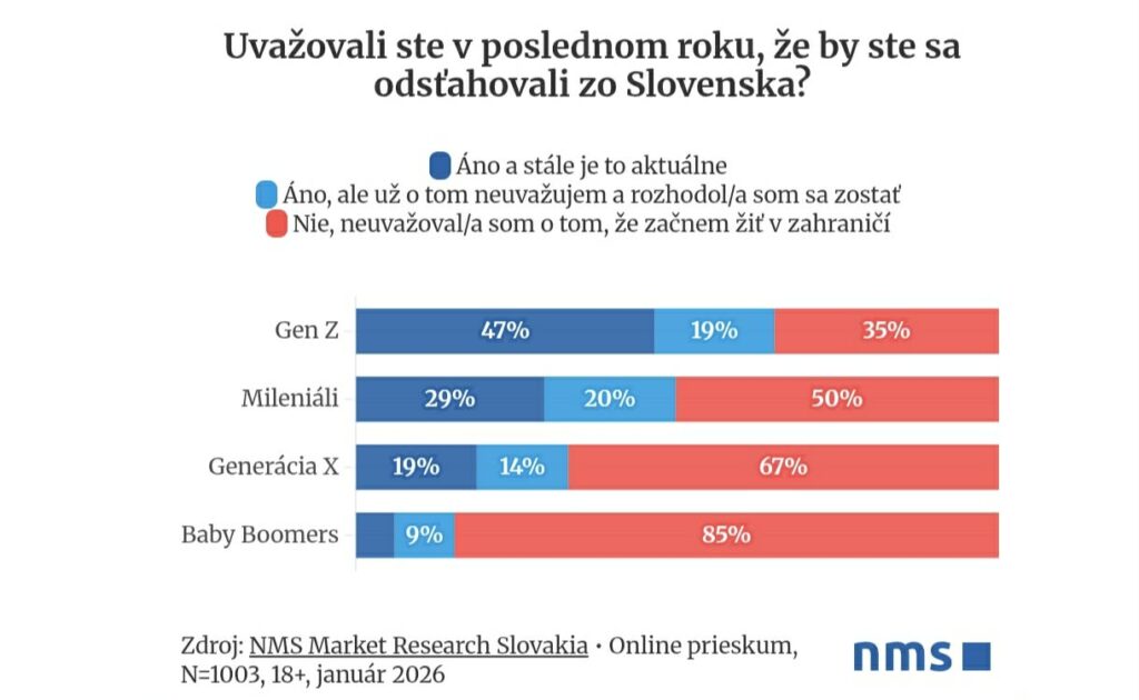 Odliv mozgov a mladých ľudí nie je pre náš región žiadnou novinkou. Kým však v minulosti sa z Gemera odchádzalo najmä „na západ“ Slovenska, aktuálny prieskum agentúry NMS Market Research Slovakia z januára 2026 potvrdzuje, že čoraz viac ľudí uvažuje rovno o prekročení hraníc štátu.