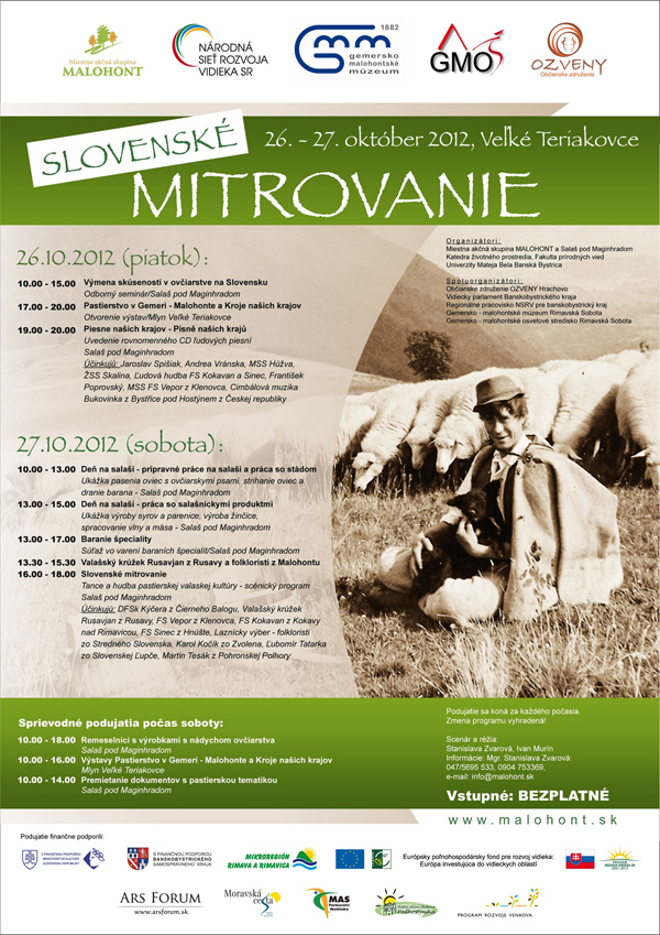 Valaské hody nazývané mitrovanie sa spájali s ukončením pastierskej sezóny, ktorá sa viaže k 26. októbru, na svätého Demetera alebo Mitra. Bačovia a valasi sa v tom období vracali do dedín vo sviatočných šatách a v kostole obetovali syr a oštiepky. Potom nasledovalo vyúčtovanie sa s majiteľmi oviec a spoločná hostina, ktorej neodmysliteľnou súčasťou bola hudba, tanec a spev. Práve na tento zvyk chceme nadviazať podujatím Slovenské mitrovanie, ktoré sa bude koncom októbra konať v našom regióne, v obci Veľké Teriakovce. Časť aktivít bude prebiehať v Mlyne a časť v novovybudovanej kolibe Salaš pod Maginhradom vo Veľkých Teriakovciach.