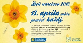 Žlté symboly jari dnes opäť zaplavia ulice Slovenska, v rámci Dňa narcisov, jedinej verejno-prospešnej finančnej zbierky Ligy proti rakovine. Už roky Liga prízvukuje, že Deň narcisov môže pomôcť aj ideovo. Heslo aktuálneho ročníka preto znie: 13. apríla môže pomôcť každý.