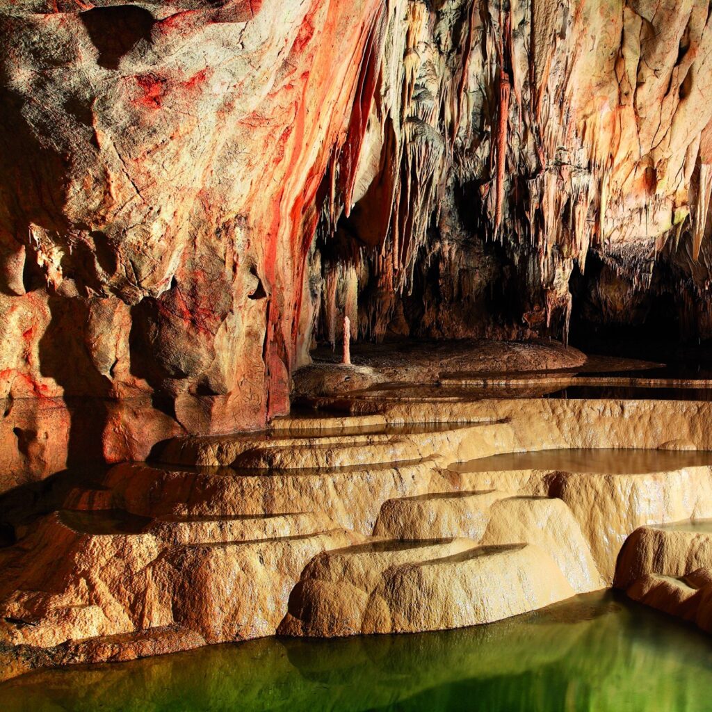 Domica, ktorá je súčasťou svetového prírodného dedičstva UNESCO od roku 1995, očaruje návštevníkov bohatou sintrovou výzdobou. Medzi jej najvýraznejšie prvky patria kaskádové jazierka známe ako Rímske kúpele a Plitvické jazierka, doplnené o charakteristické cibuľovité stalaktity a pagodovité stalagmity.