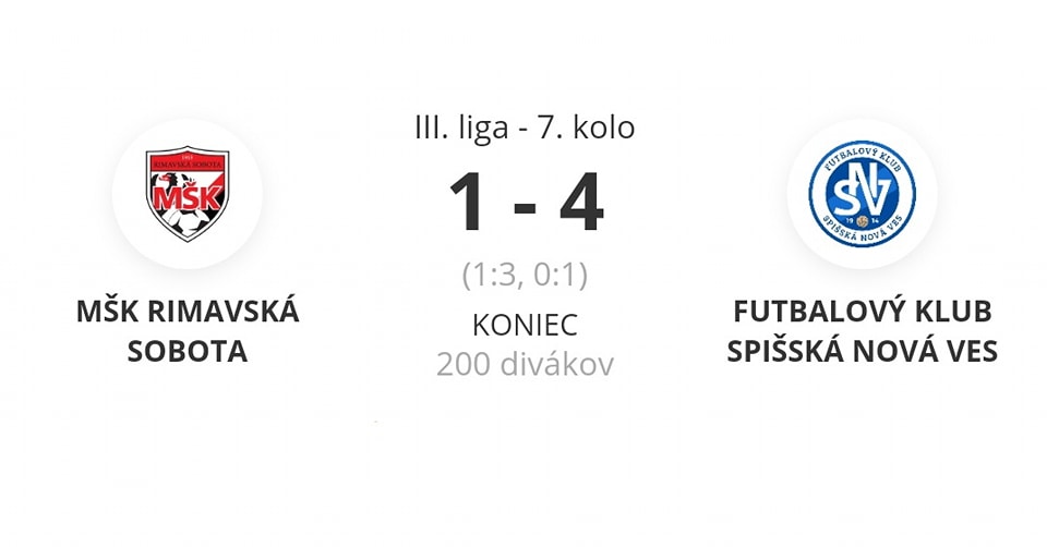 RIMAVSKÁ SOBOTA – Hráči MŠK Rimavská Sobota podľahli v nedeľňajšom zápase súperovi zo Spišskej Novej Vsi 1:4.