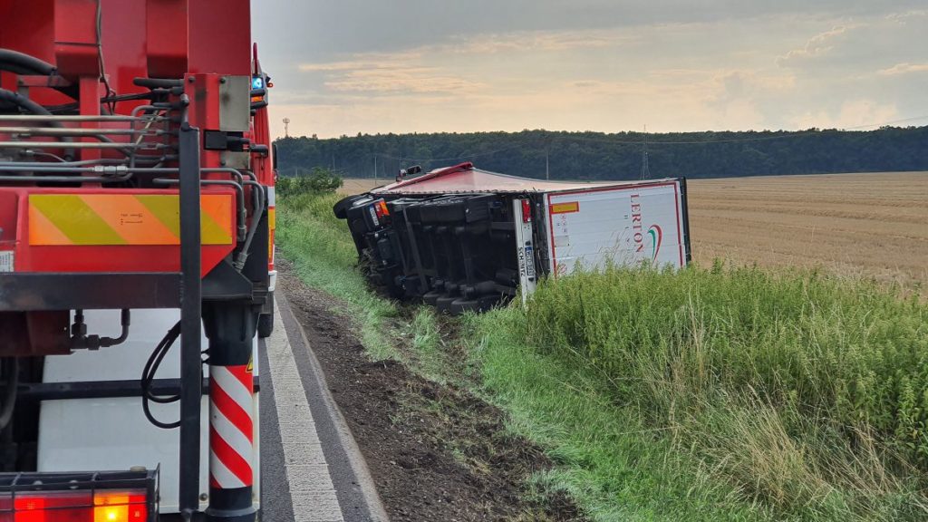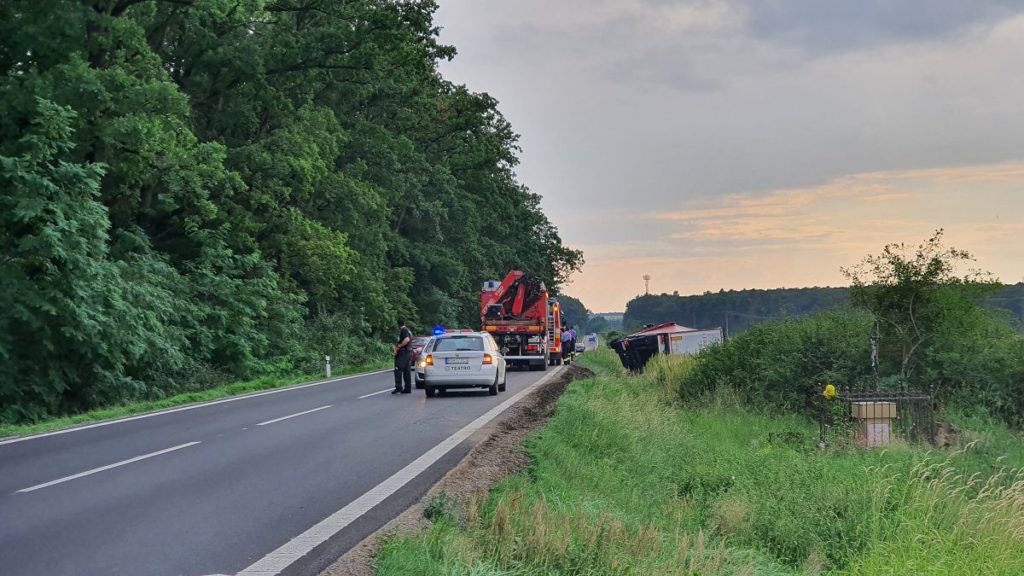 DOPLNENÉ 19. 7. 2021 o 18:51: Cesta je už aktuálne plne prejazdná, hasiči aj policajti po zdokumentovaní nehody už z miesta odišli. Zatiaľ nie je jasné, kedy dôjde k vyťahovaniu kamióna, ktoré si znova vyžiada uzavretie cesty.