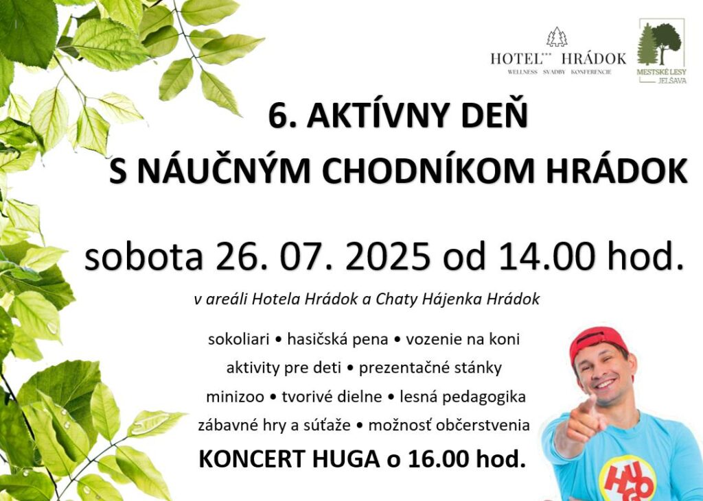 V sobotu, 26. júla 2025 sa v areáli Hotela Hrádok a Chaty Hájenka Hrádok uskutoční už šiesty ročník obľúbeného podujatia Aktívny deň s náučným chodníkom Hrádok. Podujatie, ktoré sa teší veľkej popularite medzi obyvateľmi mesta i širšieho okolia, opäť ponúkne od 14:00 bohatý program pre celú rodinu.