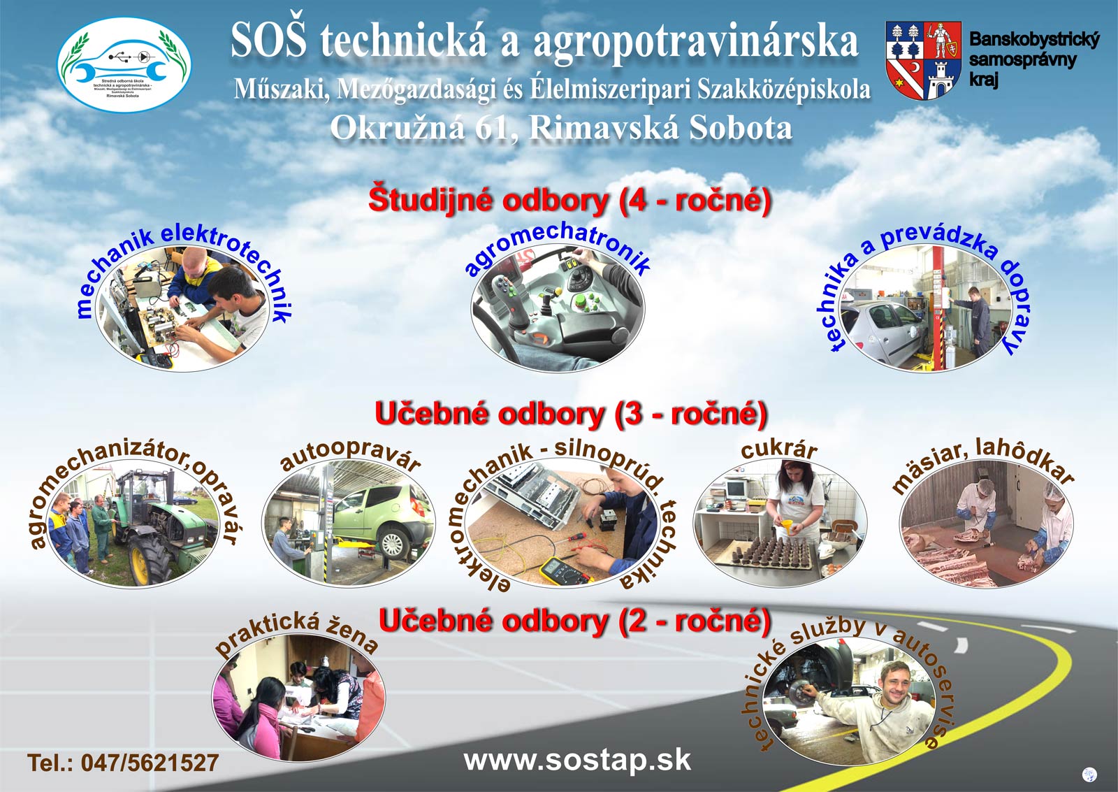 V budúcom školskom roku 2017-2018 pribudne k tradičným odborom nový študijný odbor s maturitou agromechatronik. Vyučovať sa bude experimentálne len na troch stredných školách na Slovensku a jednou z nich je práve SOŠTaAP v Rimavskej Sobote. Dôvodom zavedenia tohto odboru do siete je nedostatok kvalifikovaných pracovníkov pre modernú poľnohospodársku techniku, jej obsluhu a servis, na ktorý poukázali zamestnávatelia z oblasti poľnohospodárstva.