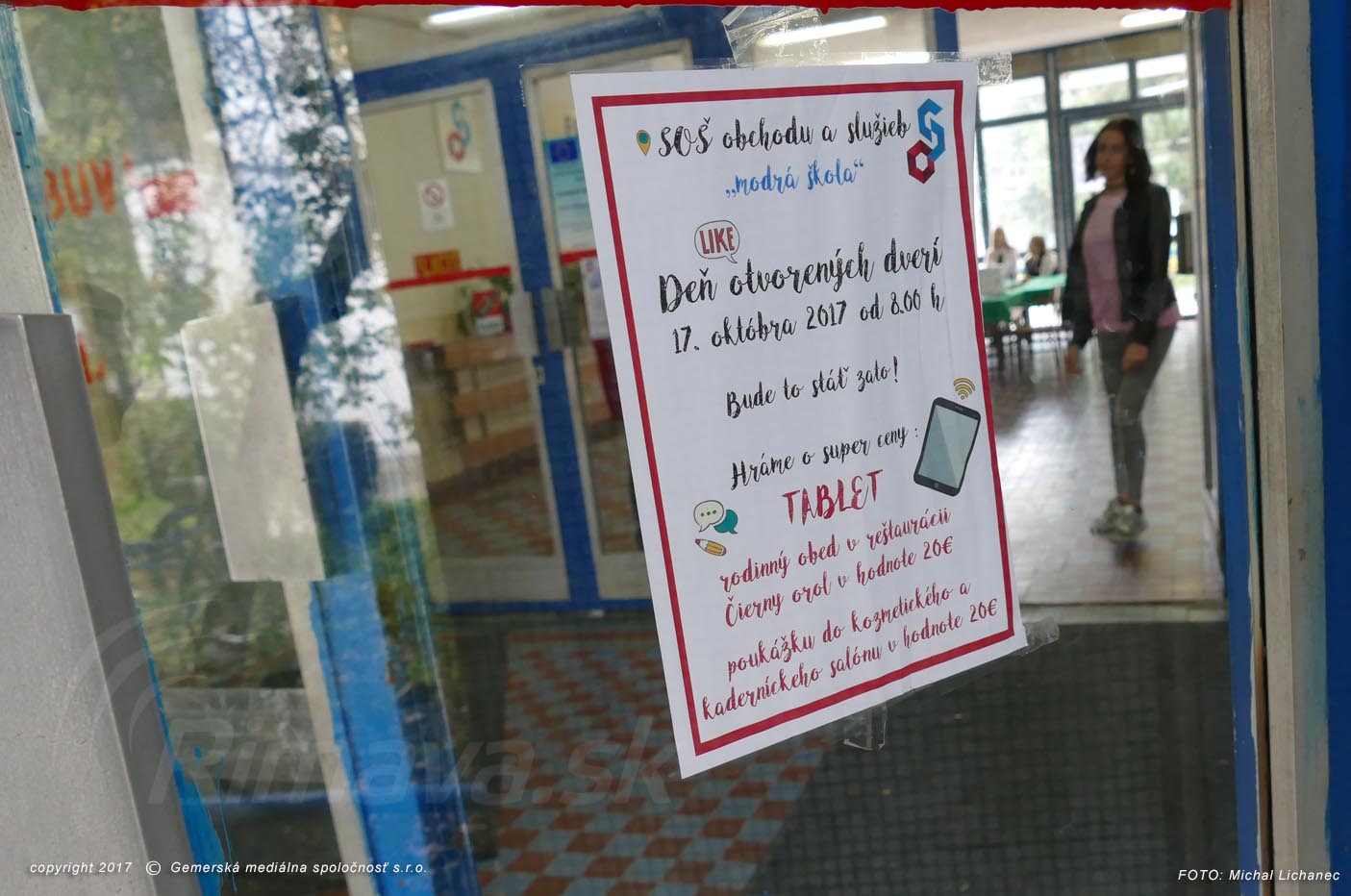 Súčasťou včerajšej dopoludňajšej prezentácie školy bola aj súťaž o tablet a iné ceny. Prvé miesto – tablet po dnešnom žrebovaní patrí Melise Portelekyovej zo ZŠ Mihálya Tompu Rimavská Sobota. Druhé miesto - rodinný obed v reštaurácii Čierny orol v hodnote 20 eur získal Oliver Benda zo ZŠ Sama Vozára v Hrachove. Tretie miesto - poukážku do kozmetického a kaderníckeho salónu SOŠ obchodu a služieb v hodnote 20 eur dostane Zuzana Astalošová zo ZŠ P.K. Hostinského Rimavská Sobota.