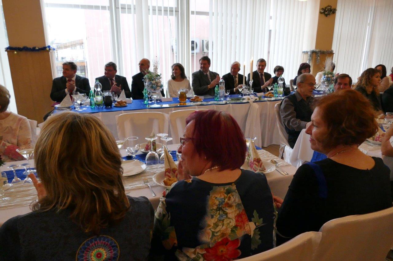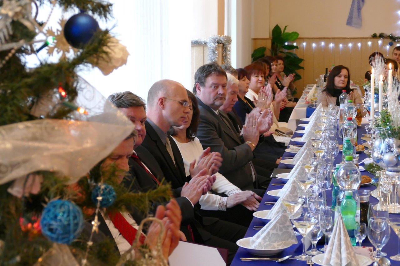 Pedagógovia, hostia z partnerských škôl či bývalí zamestnanci sa na tomto vianočnom večierku stretli už po 19-ty krát. „Pri podobnom scenári, v rovnakom prostredí, trochu obmenenej zostave a možno aj o niečo starší,“ priblížil riaditeľ SOŠOS Jaroslav Bagačka. Podľa slov riaditeľa školy, netreba práve v tomto uponáhľanom období zabúdať na betlehemské svetlo, kde sa zrodil nový život a záchrana pre ľudí. „To nie je bláznovstvo, to bola a je skutočnosť, realita,“ pripomenul Bagačka. Ako podotkol, v postmodernom svete sa Vianoce objavujú ako sviatok rodiny, pokoja, lásky, ako chvíľa na zastavenie, na dobré jedlo, na tradície, na návrat stratených synov. Vianoce sú preto potrebné z viacerých uhlov pohľadu. Blíži sa koniec kalendárneho roka a to je čas vyhodnotení, predsavzatí, bilancovania. „Rovnako je to čas bilancovania aj pre školu,“ priblížil Bagačka a zhodnotil klady a aj negatíva roka, s ktorými sa stretli. „Je toho naozaj dosť, čo sme urobili. Všetkým za vykonanú prácu v uplynulom roku ďakujem,“ uzavrel Jaroslav Bagačka.