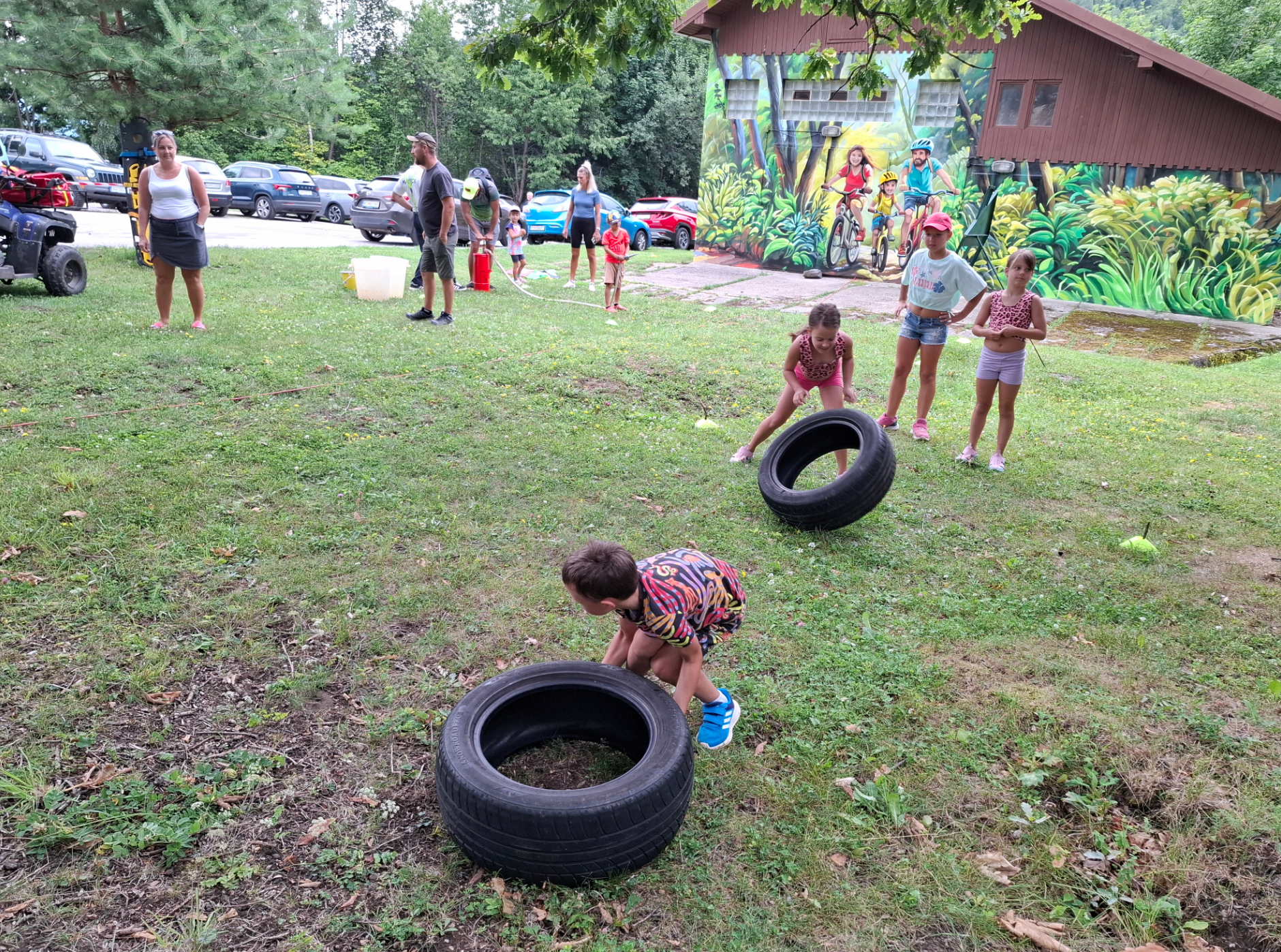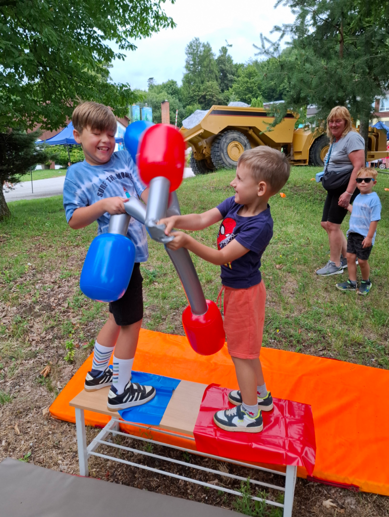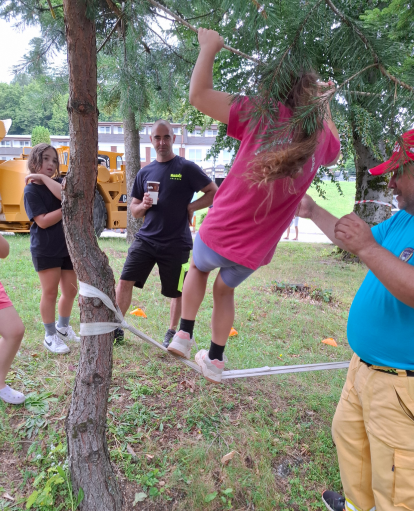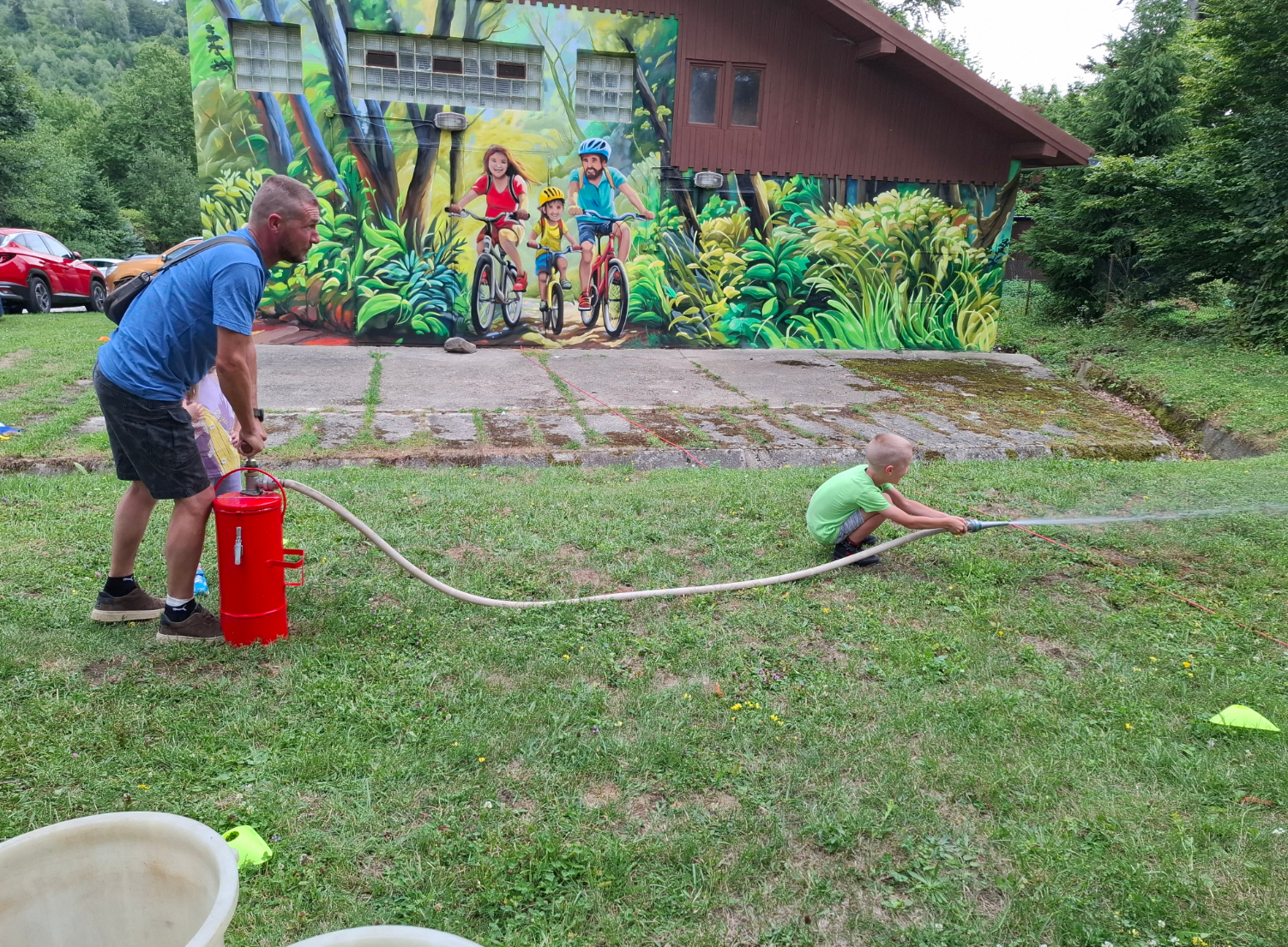 Po spoločnom obede sa jednotliví účastníci začali pripravovať na svoje aktivity a prezentácie. Dobrovoľní hasiči z Jelšavy prispeli k programu dynamickou prekážkovou dráhou, ktorú postavili na trávnatej ploche. Deti si mohli vyskúšať skok vo vreci, hasenie Hotela, premiestňovanie pneumatík, jednoduché bojové prvky a lezeckú dráhu.
