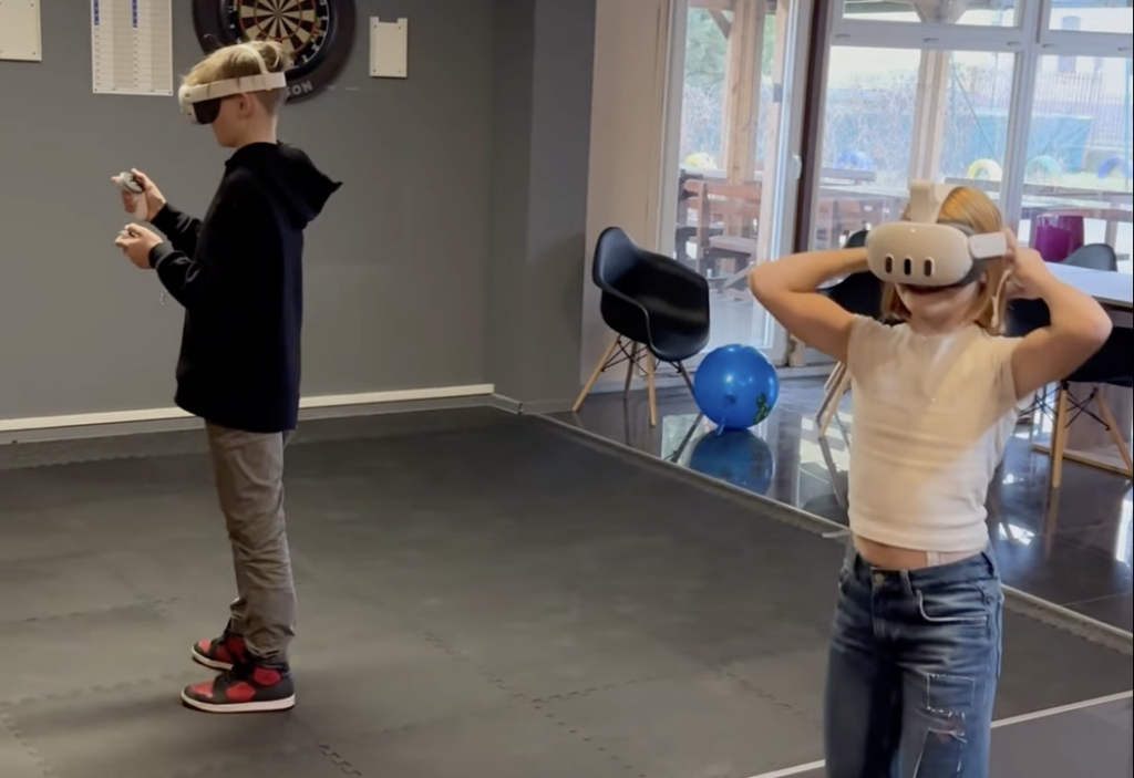 A čo deti, ktoré viac láka svet hier ako pohybu? „Máme aj virtuálnu realitu. No nie takú, pri ktorej sa len sedí. Tu sa deti hýbu, skáču, vnímajú prostredie a sú do toho celkom vžité,“ vysvetľuje Kristián Tóth. Zatiaľ sú k dispozícii dva VR sety, ktoré umožňujú aj hru vo dvojici.
