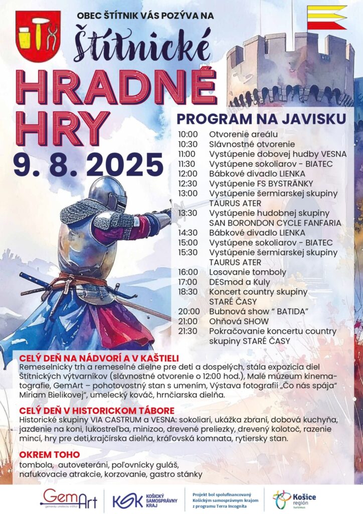 Obec Štítnik sa opäť stane dejiskom výnimočného podujatia, ktoré spája históriu, umenie a rodinnú zábavu. Štítnické hradné hry, ktoré sa uskutočnia v sobotu 9. augusta 2025, ponúknu bohatý program pre všetky vekové kategórie. Návštevníci sa môžu tešiť na rytierov, sokoliarov, dobovú hudbu, tvorivé dielne, bábkové divadlo aj večernú ohňovú show.