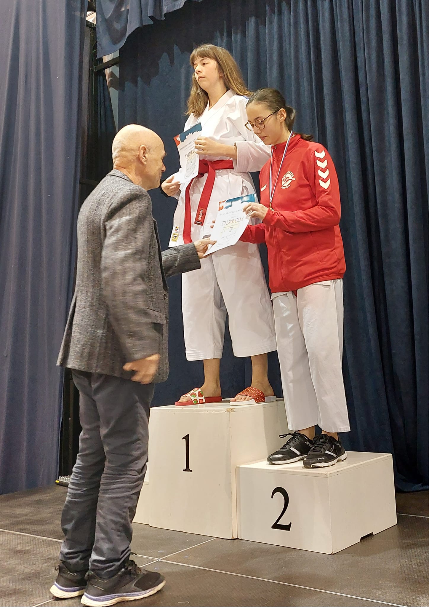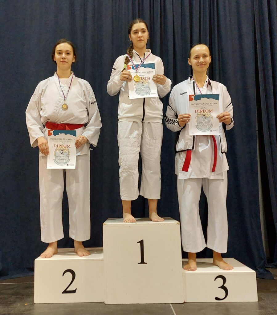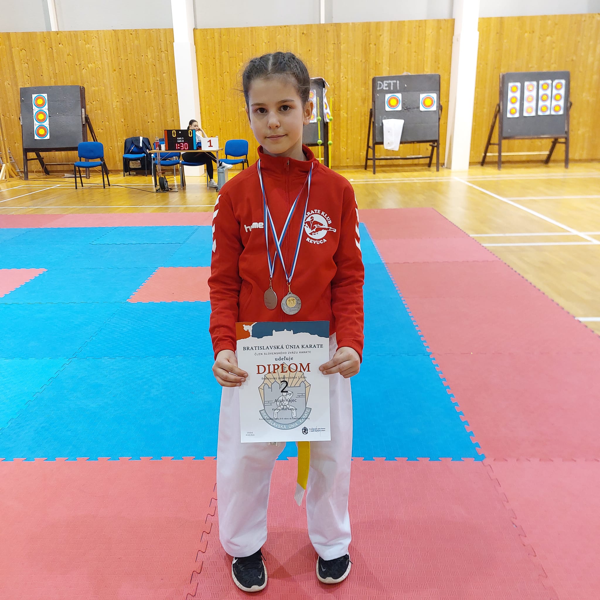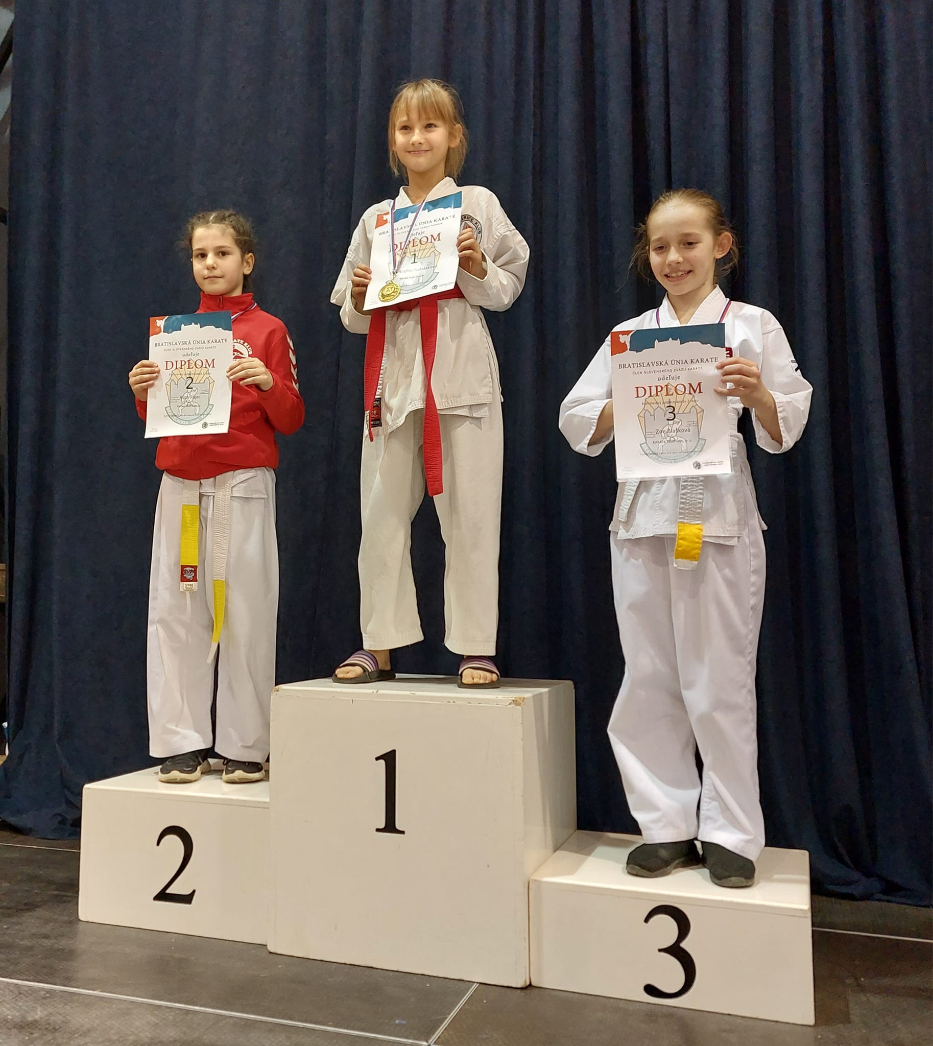 "Eliška získala zlato v kategórii kata (súborné cvičenia) seniorky. V kategórii kata staršie juniorky (18-20 rokov) vybojovala striebornú medailu a cenný kov rovnakého lesku dosiahla aj v disciplíne kumite (športový zápas) juniorky open," priblížil tréner.