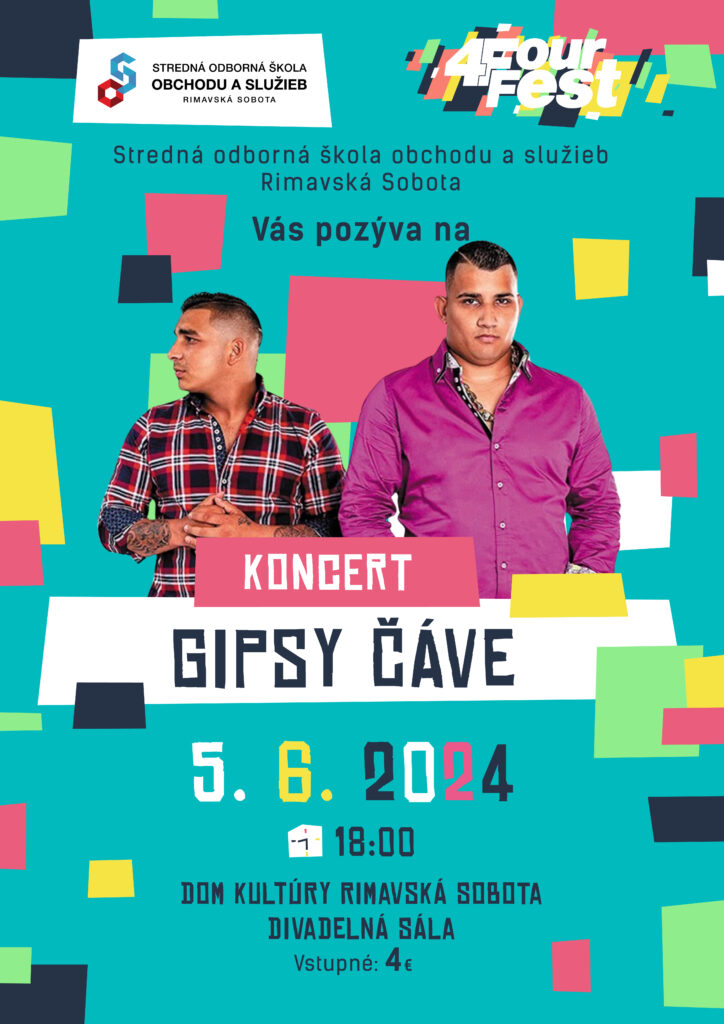 V spolupráci so Strednou odbornou školou obchodu a služieb v Rimavskej Sobote sme si pre vás pripravili súťaž o štyri lístky na fantastický koncert plný života v podaní skupiny Gipsy Čáve, ktorý si v Rimavskej Sobote môžete užiť 5. júna o 18-tej hod. v Dome kultúry v R. Sobote.