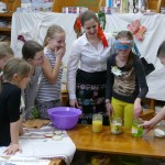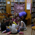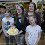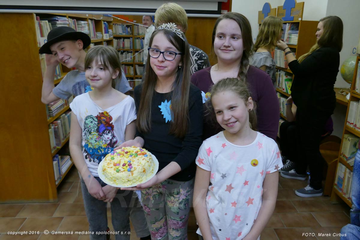Splnenie jednotlivých disciplín sa nezaobišlo bez odmeny, z ktorej sa najviac tešili chuťové bunky mladých čitateľov. Výhra pre tých najšikovnejších bola nielen oku lahodiaca ale aj mňamózna. Bola to torta posypaná lentilkami, ktorú si deti za pomoci pracovníčok knižnice pripravili samé. Po vyhlásení víťazov a pokročilom čase sa k slovu prihlásila večerná prechádzka okolo námestia, po ktorej takmer každý malý čitateľ-bádateľ zaliezol do svojho spacieho vaku v podkroví knižnice a nechal sa unášať na vlnách možno aj Andersenových rozprávok 🙂