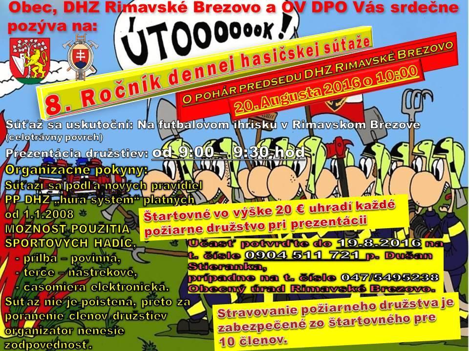 V sobotu, 20. augusta, je pripravená naozaj široká paleta podujatí. Už od 8.00 hod. ráno sa môžete zabaviť a zároveň si zašportovať na 5. ročníku bakuľového turnaja Tuka cup v obci Kružno. Pre návštevníkov je pripravené aj občerstvenie, v ponuke bude aj slovenský hamburger a čapované pivo. Ak vás skôr zaujíma povolanie hasičov, v Rimavskom Brezove sa na futbalovom ihrisku už ôsmykrát koná od 9.00 hod. hasičská súťaž o pohár predsedu DHZ. Ak ste pohybovo zdatní, tak si môžete v tímoch aj zasúťažiť.
