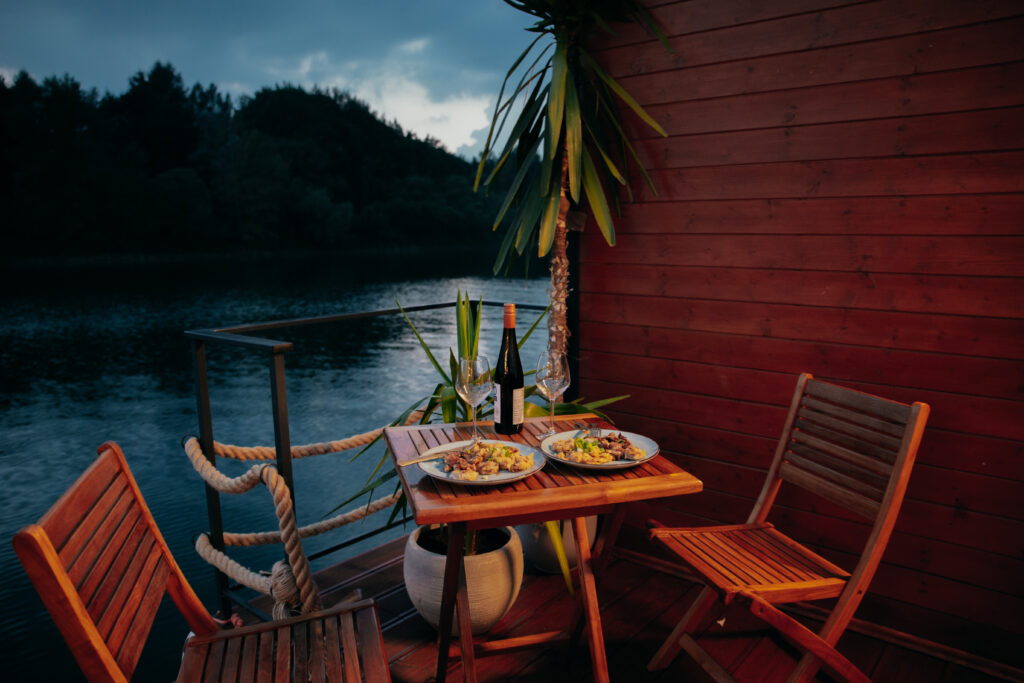 Výnimočná je aj vyvýšená terasa, ktorá odhaľuje panoramatické výhľady na Tatry a Liptovskú prírodu. Môžete si na nej v pokoji prečítať knihu, vychutnať dobré jedlo alebo pozorovať nádherný západ slnka. Houseboat je otvorený celoročne, no počas zimných mesiacov bude z bezpečnostných dôvodov ukotvený pri brehu Liptovskej Mary.