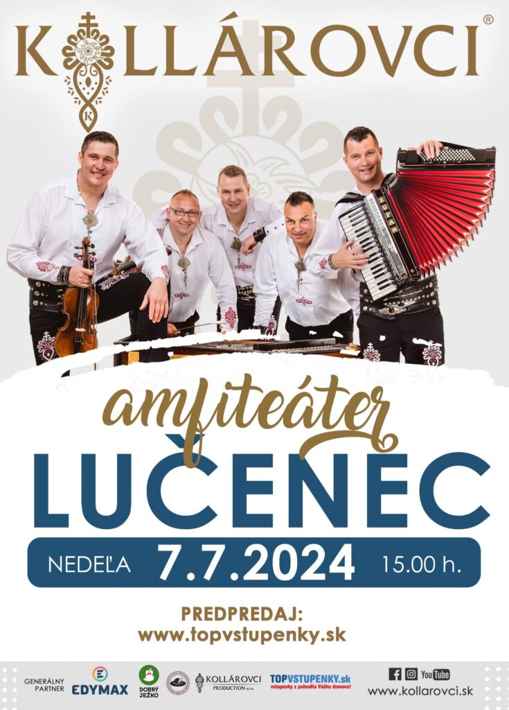 Minulý rok sa amfiteáter v Lučenci na koncerte Kollárovcov zaplnil do posledného miesta. Tak si ich môžete užiť aj tento rok. Koncert sa uskutoční v nedeľu (7. júla) o 15.00. Vstupenky sú k dispozícii v predpredaji len online na www.topvstupenky.sk. Keďže sa očakáva na koncerte vysoký počet návštevníkov, je dôležitá trpezlivosť a ohľaduplnosť pri parkovaní v okolí parku. Organizátori odporúčajú v prípade slnečného počasia myslieť na prikrývku hlavy a pitný režim.