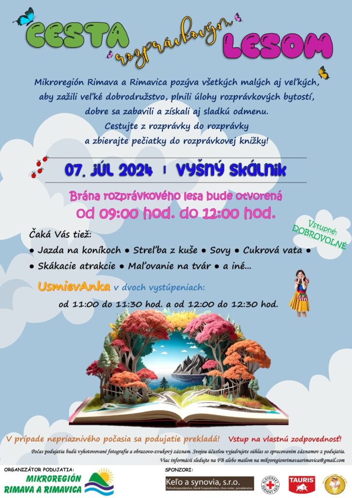 Vo Vyšnom Skálniku sa uskutoční v nedeľu, (7. júla) jubilejný 20. ročník Cesty rozprávkovým lesom. Toto obľúbené rodinné podujatie opäť ožije rozprávkovými bytosťami, ktoré pripravia pre deti zaujímavé úlohy. Na konci rozprávkovej cesty bude na ne čakať sladká odmena. Podľa Henriety Struhárovej, manažérky Mikroregiónu Rimava a Rimavica, je Rozprávkový les vstupom do sveta zábavy, hier a trávenia spločného času v prírode. Brána sa otvorí o 9:00 a posledný vstup bude o 12:00. "Vítané sú všetky deti a tiež ich príbuzní a priatelia," poznamenala.