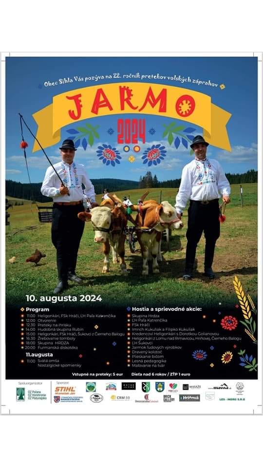 Obec Sihla pozáva na 22. ročník preteku volských záprahov. Podujatie začína 10. augusta o 11.00, súčasťou podujatia je i bohatý sprievodný program.