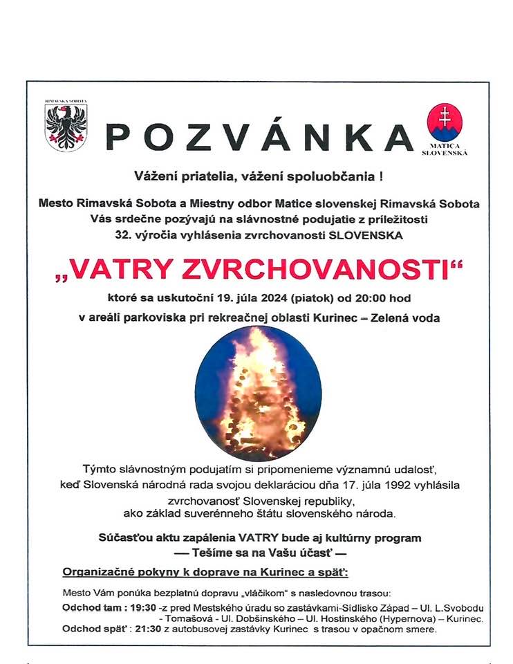 V Rimavskej Sobote sa bude aj tento rok konať oslava výročia prijatia Deklarácie Slovenskej národnej rady o zvrchovanosti Slovenskej republiky. Oslavy sa uskutočnila 19. júla od 20.00 v rekreačnej oblasti Kurinec - Zelená voda.