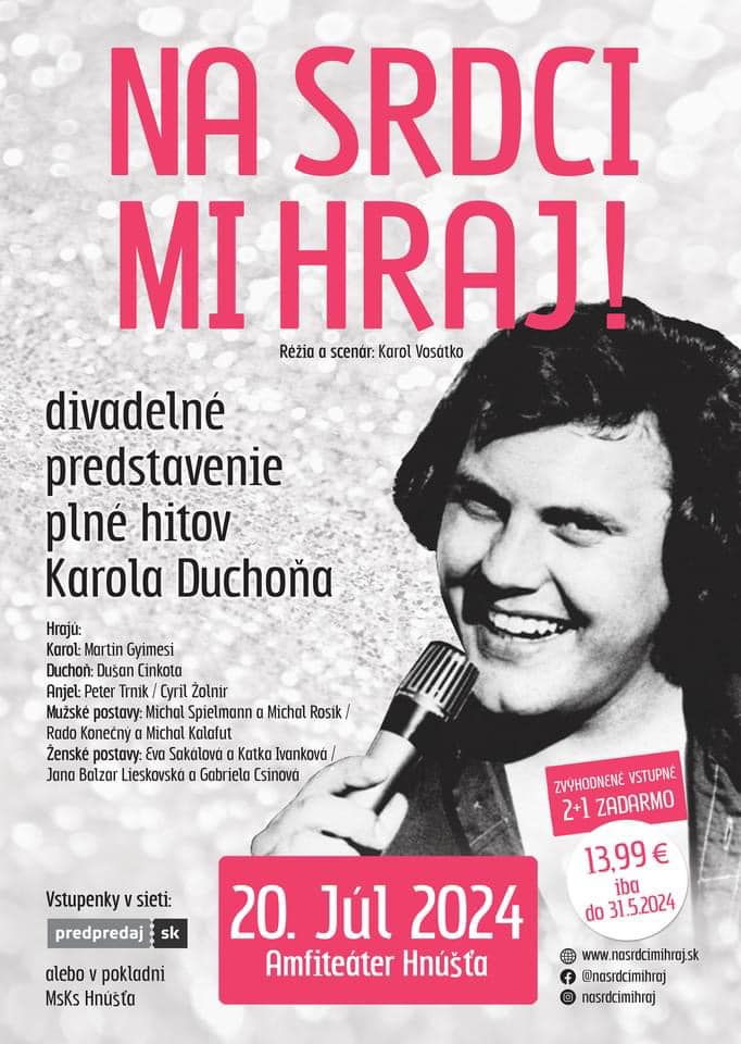 Divadelné predstavenie Na srdci mi hraj bude plné hitov Karola Duchoňa. Pozrieť si ho môžete v sobotu (20. júla) v amfiteátri v Hnúšti.