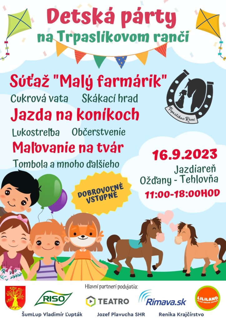 V priestoroch Trpaslíkovho ranča na vás bude čakať už tretí ročník Detskej párty so začiatkom o 11-tej hodine. Na deti bude čakať okrem jazdy na koni aj mnoho ďalších zábavných aktivít.