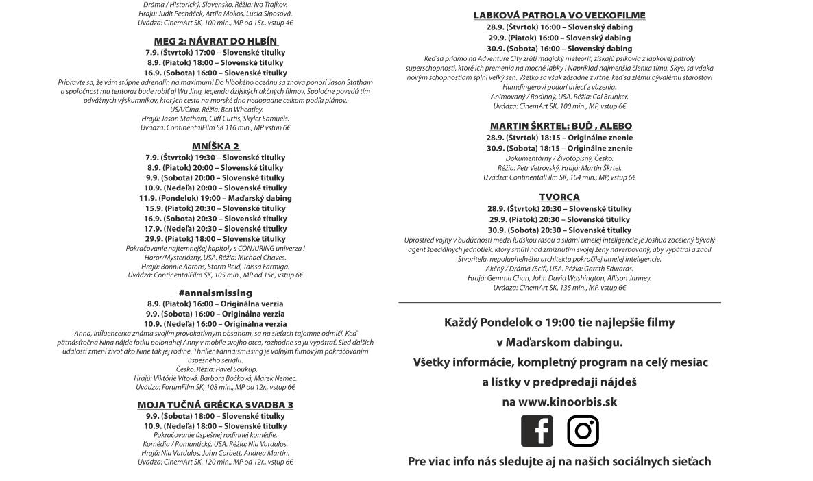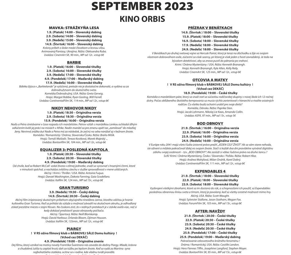 Navštíviť môžete aj rimavskosobotské Kino Orbis, ktoré má v ponuke pestrú paletu najnovších filmových snímok, ktoré si môžete pozrieť v slovenskom i maďarskom dabingu, alebo s titulkami.