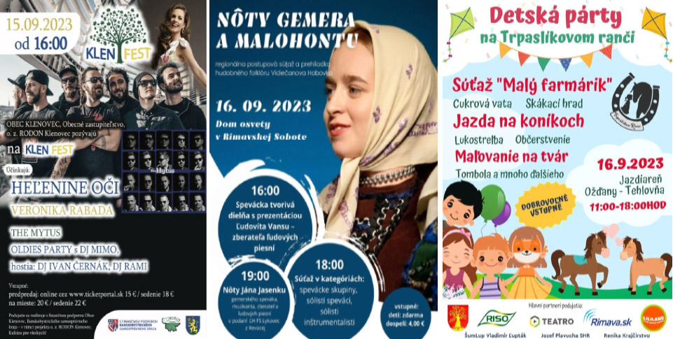 GEMER/NOVOHRAD – Kultúrne a športové podujatia nás čakajú aj v strede septembra. Predĺžený víkend ešte môžete využiť na podujatia, ktoré sa uskutočnia medzi poslednými v tomto roku. Počasie by nám ešte niekoľko dní malo priať, tak si pozrite naše tipy na víkend.