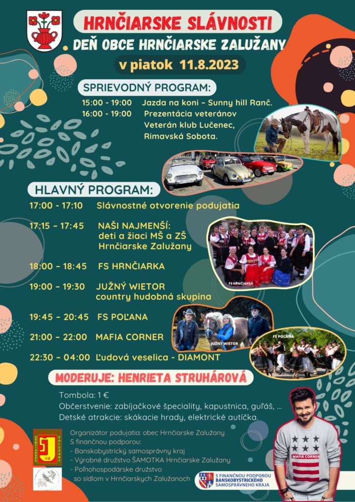 Hrnčiarske Zalužany si na piatok (11. augusta) pripravili veľkolepý program v rámci osláv obce. Návštevníkov čaká program pre deti, prezentácia veteránov, vystúpenia detí a žiakov z materskej a základnej školy, FS Hrnčiarka, ďalej hudobná skupina Južný Wietor, FS Poľana, Mafia Corner a napokon ľudová veselica.