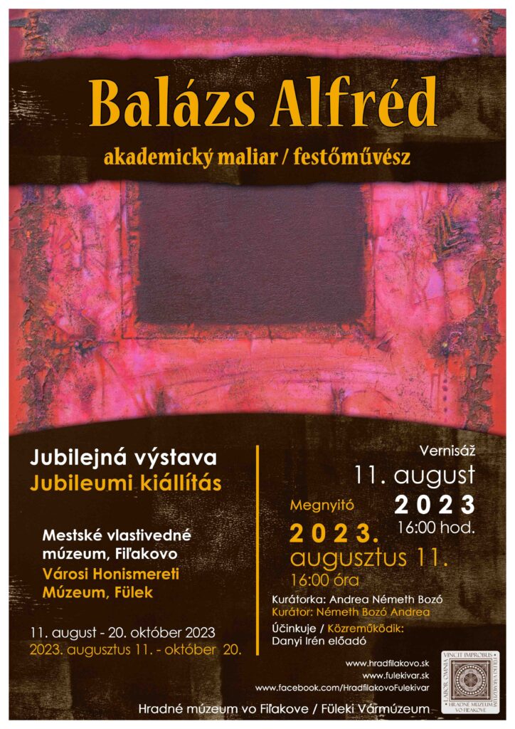 V sobotu (11. augusta) o 16:00 hod. sa uskutoční vernisáž jubilejnej výstavy diel maliara Alfréda Balázsa, ktorej kurátorkou je historička umenia Novohradského múzea a galérie v Lučenci, Andrea Németh Bozó.