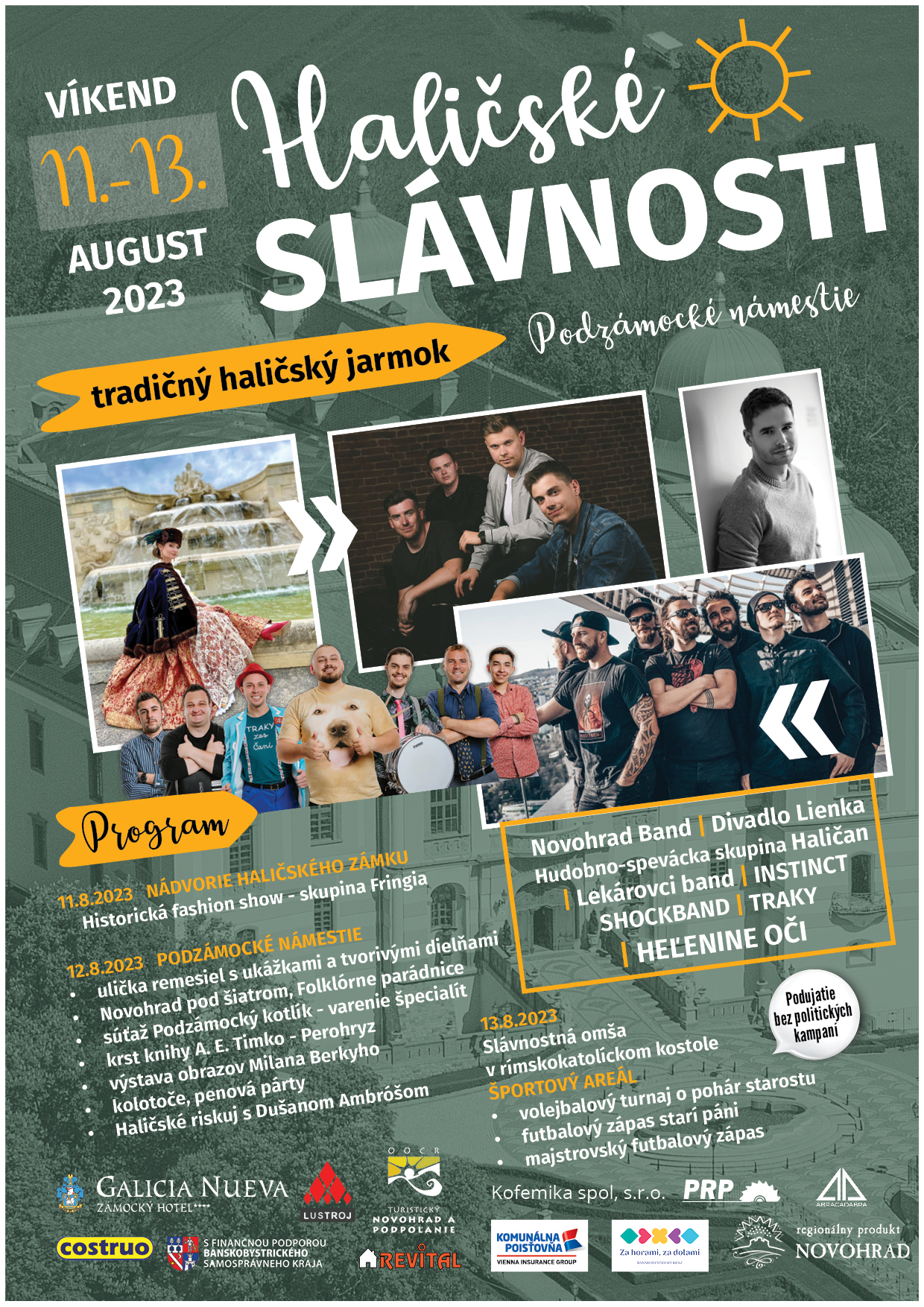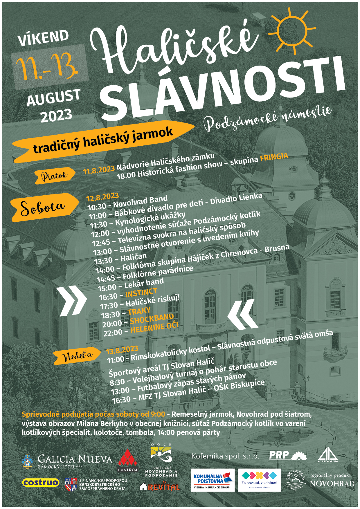 V obci Halič (okres Lučenec) nás najbližšie dni čakajú slávnosti, ktoré sú v obci a jej okolí veľmi obľúbeným letným podujatím. Okrem hudobného programu na návštevníkov bude čakať ulička remesiel s ukážkami, tvorivé dielne, súťaž Podzámocký kotlík, výstava obrazov či ďalšie sprievodné podujatia.