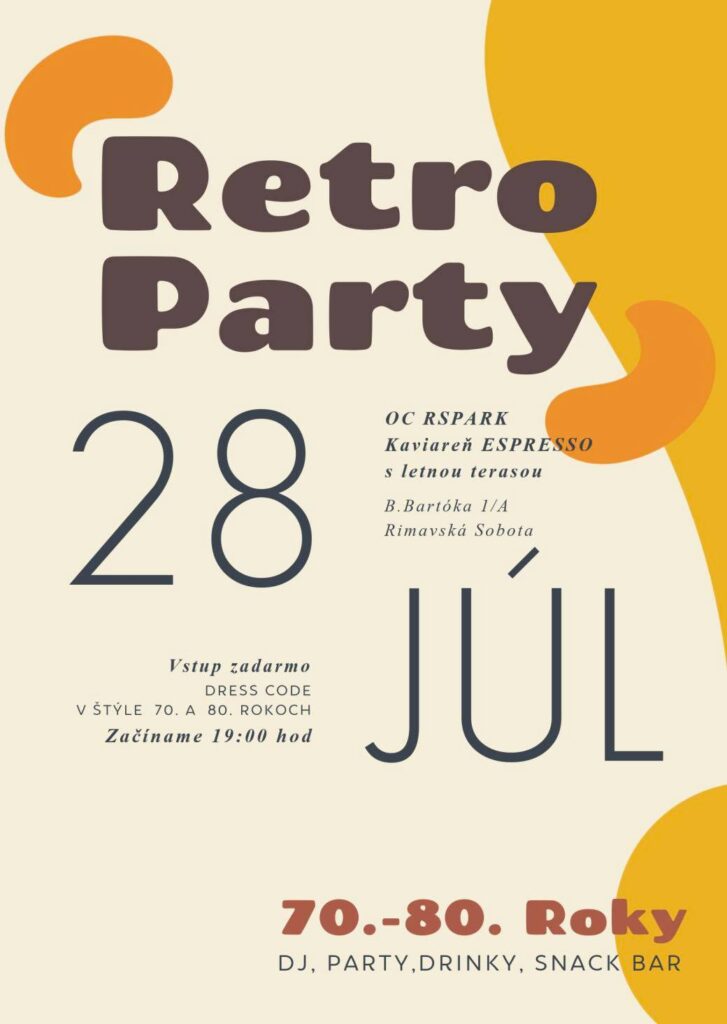 Už dnes (28. júla) sa kaviareň Espresso v priestoroch OC RSParku premení na pátry klub, v ktorom vám zahrajú najznámejšie hity zo 70. a 80. rokov. Vstupné na podujatie je zadarmo.