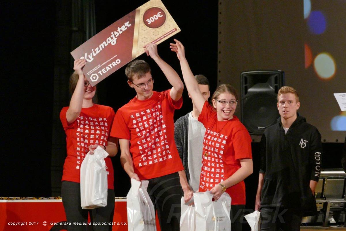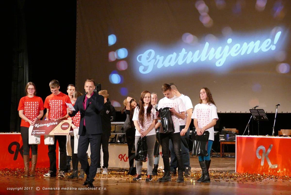 V poradí druhý ročník zábavno-vedomostnej súťaže Kvízmajster už pozná svojich víťazov. Stali sa nimi maturanti z Gymnázia Ivana Kraska – René Lecső, Martina Slabejová a Dominika Slaninová. V napínavom finálovom súboji si poradili so študentmi z Obchodnej akadémie. Ich cesta za celkovým triumfom a rozprávkovou výhrou 300€ však nebola jednoduchá. V semifinále narazili na svojich mladších spolužiakov z II.A a od vyradenia ich zachránila až posledná otázka. Druháci sa napokon spoločne so žiakmi Strednej odbornej školy v Hnúšti umiestnili na delenom 3. mieste.