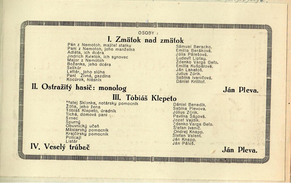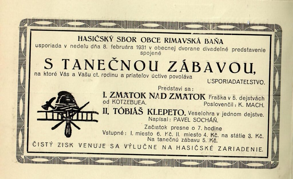 Z archívnych dokumentov obce vyplýva, že miestni hasiči vedeli spojiť komunitu už v roku 1931. Historická pozvánka z 8. februára toho roku lákala obyvateľov na divadelné predstavenia „Zmätok nad zmätok“ a „Tobiáš Klepeto“, po ktorých nasledovala tanečná zábava.