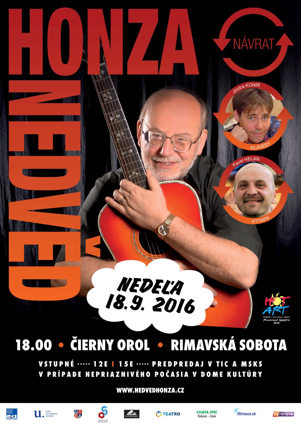 Koncerty sú súčasťou kultúrneho leta HOT ART – umenie v uliciach mesta Rimavská Sobota, ktoré pre vás organizuje MsKS s finančnou podporou Fondu na podporu umenia a miestnych podnikateľov. V septembri pokračuje priamym prenosom baletu Skrotenie zlej ženy z Boľšoj teatra v kine Orbis, filmovou prednáškou Petra Konečného, detským predstavením Paci pac, klavírnym recitálom mladej talentovanej klaviristky Bibiany Miškolciovej, či koncertom známeho folkového speváka Honza Nedvěda s hosťami. Projekt Hot art uzavrie v posledný septembrový deň, piatok 30. 9. o 19.00 hod. bláznivá komédia z manželského života s výborným hereckým obsadením Ach, Júlia!