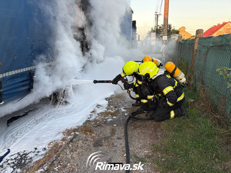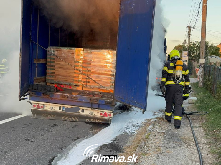 Podľa našich informácií si vodič počas jazdy všimol, že mu „strelila“ pneumatika. Okamžite zastavil a zistil, že plachta na návese už horí. S požiarom začal bojovať vlastnými silami, no oheň sa šíril rýchlo.